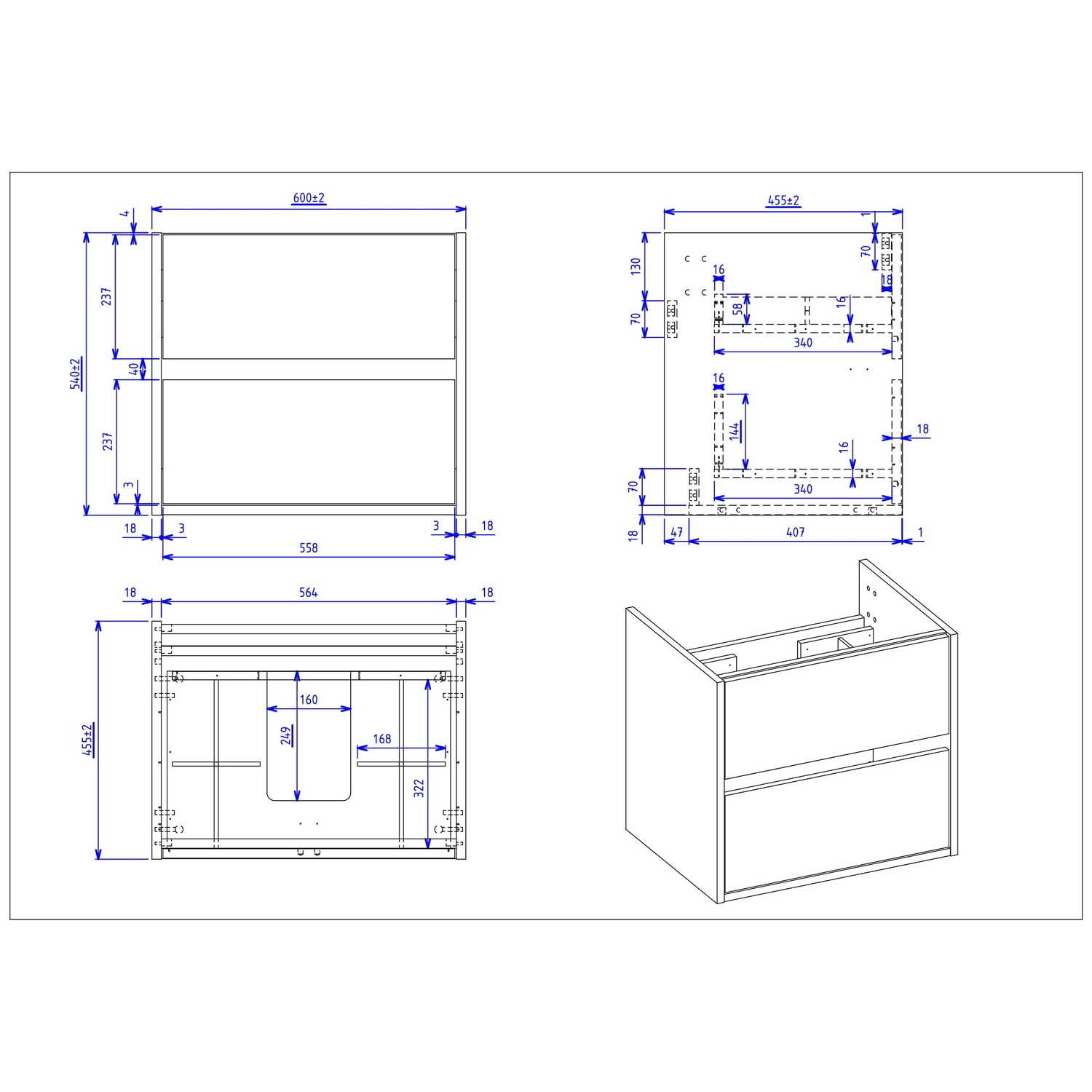 - Unit dimensions: H540 x W600 x D455 mm (give or take -/+ 3mm per measurement)