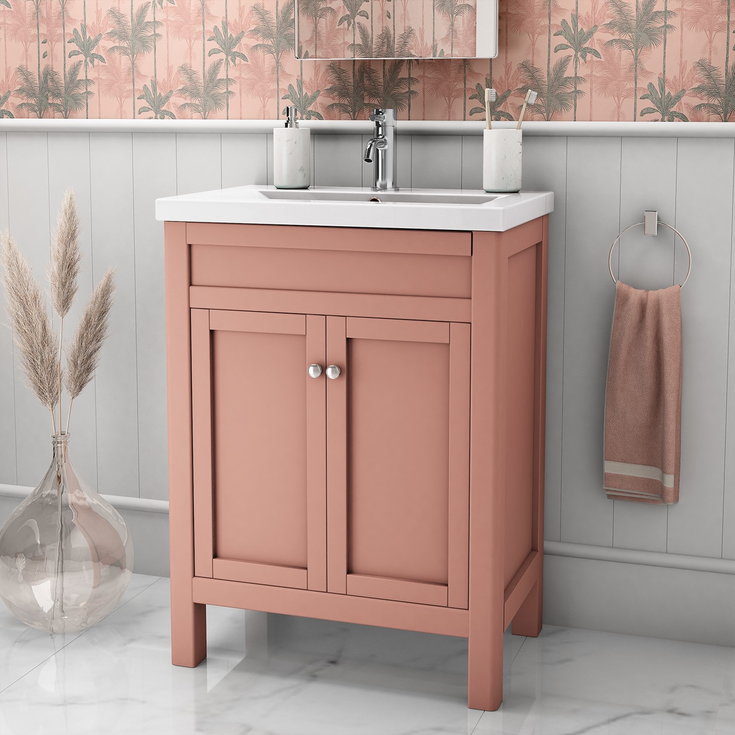 - Matt pink shaker style freestanding vanity unit with a modern twist