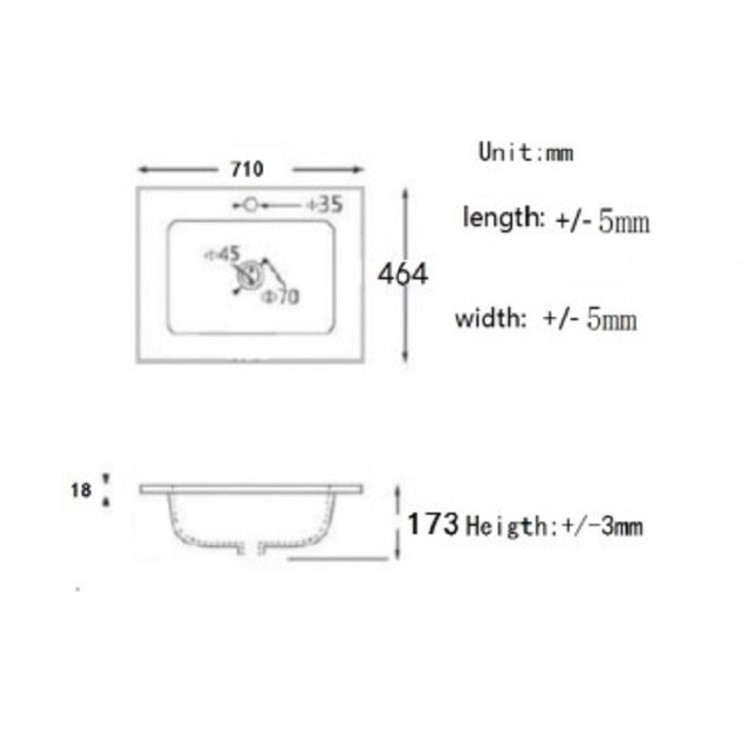 x1 GRADE A1 - Sion 710mm White Gloss Inset Basin