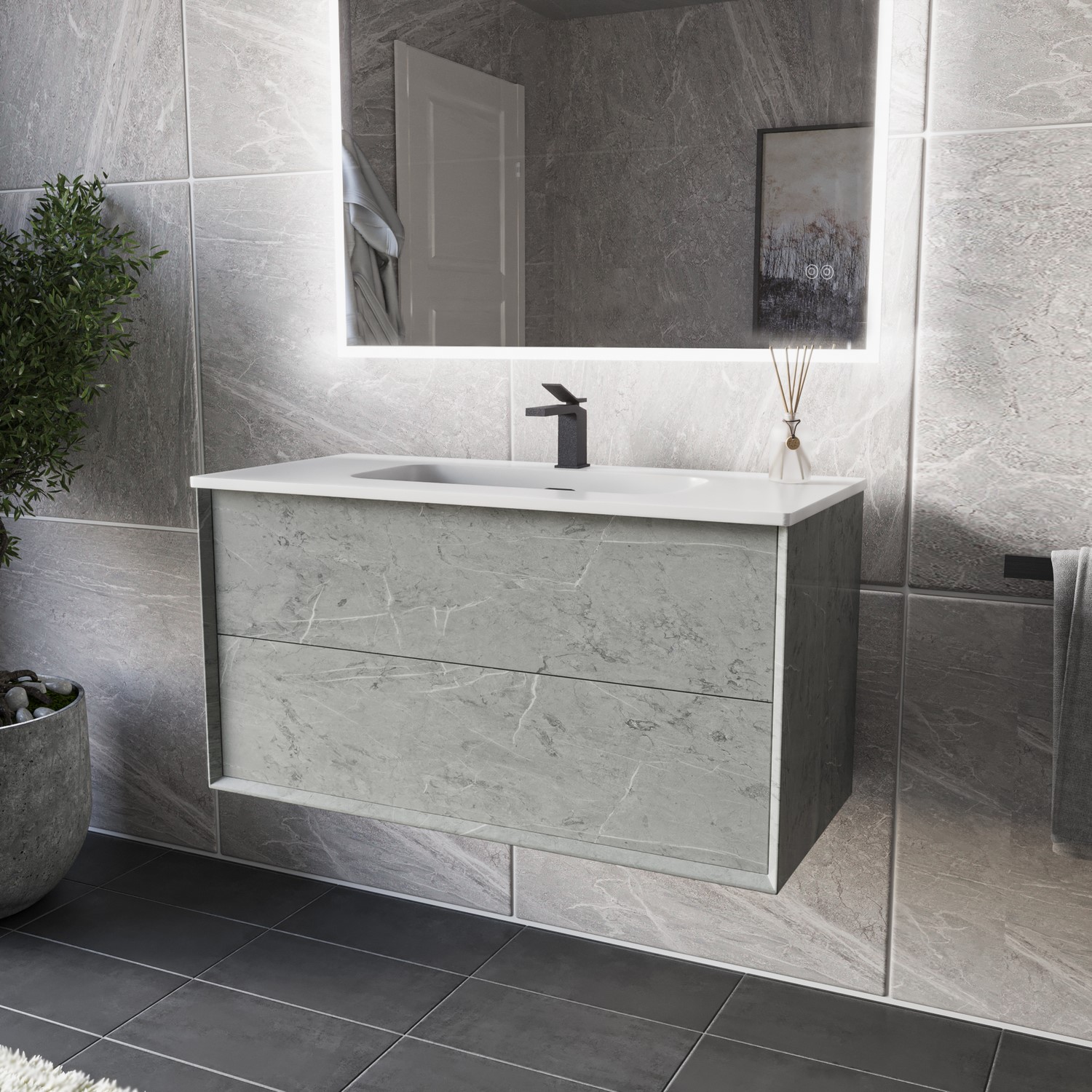 - Clean and modern stone effect vanity unit ideal for any modern bathroom