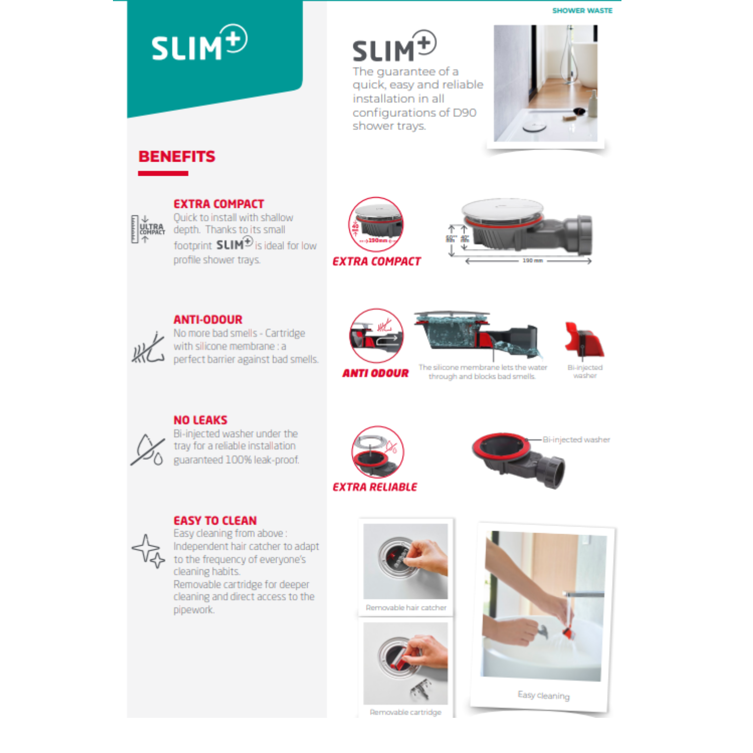 - Extra Compact - Quick to Install with shallow depth. Thanks to its small footprint SLIM+ is ideal for low profile shower trays