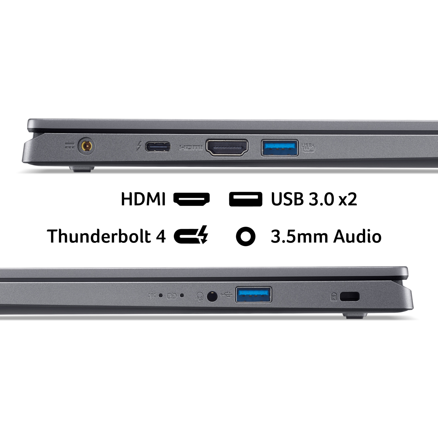 Equipped with 16 GB of RAM and a lightning-fast 512GB PCIe NVMe SSD, the Aspire 15 ensures quick boot times, seamless multitasking, and ample space for your documents, media, and applications. Whether you're editing spreadsheets or streaming HD content, you’ll experience little to no lag.