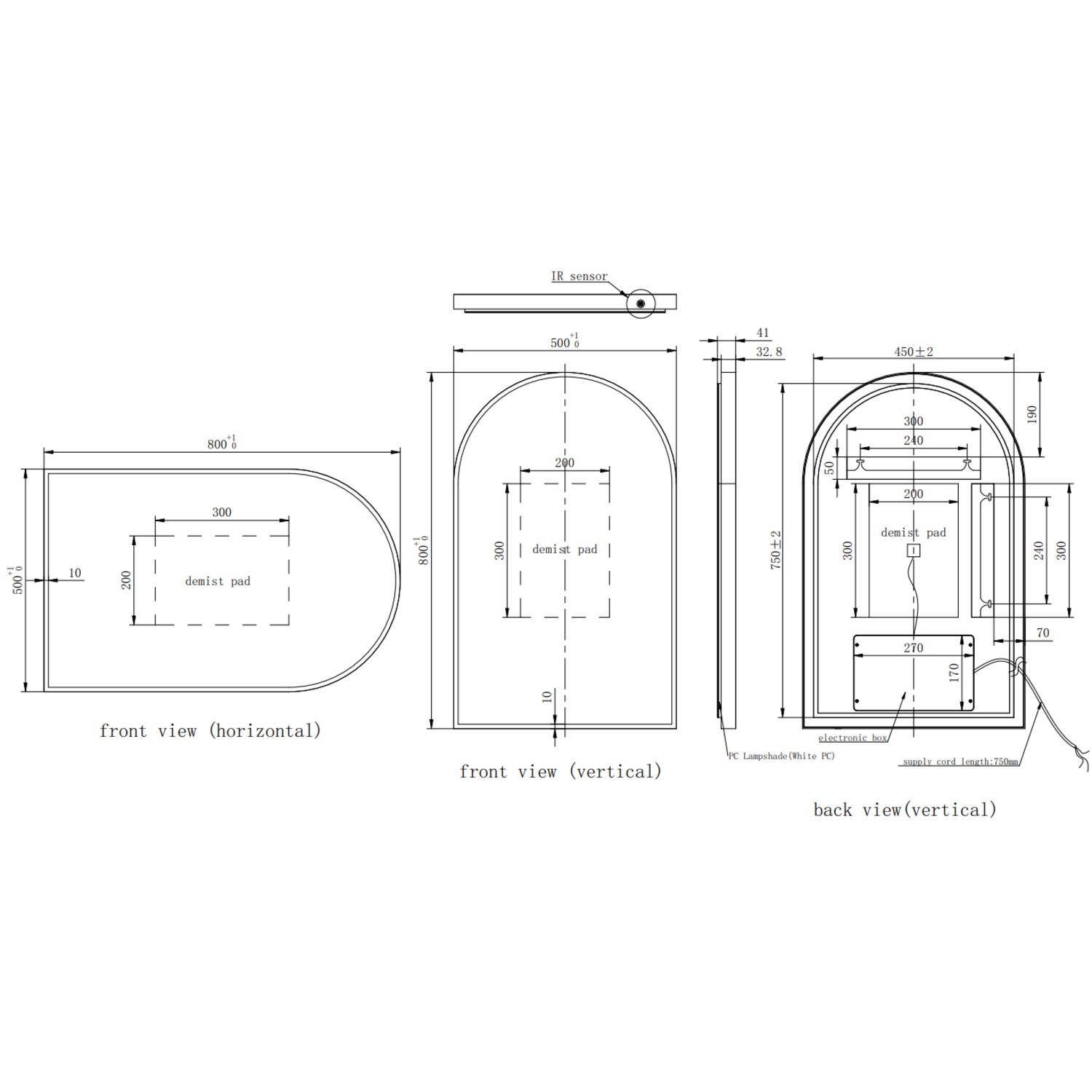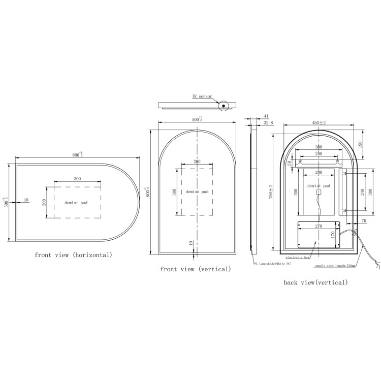 - Mirror Dimensions: W500 x H800 x D41mm