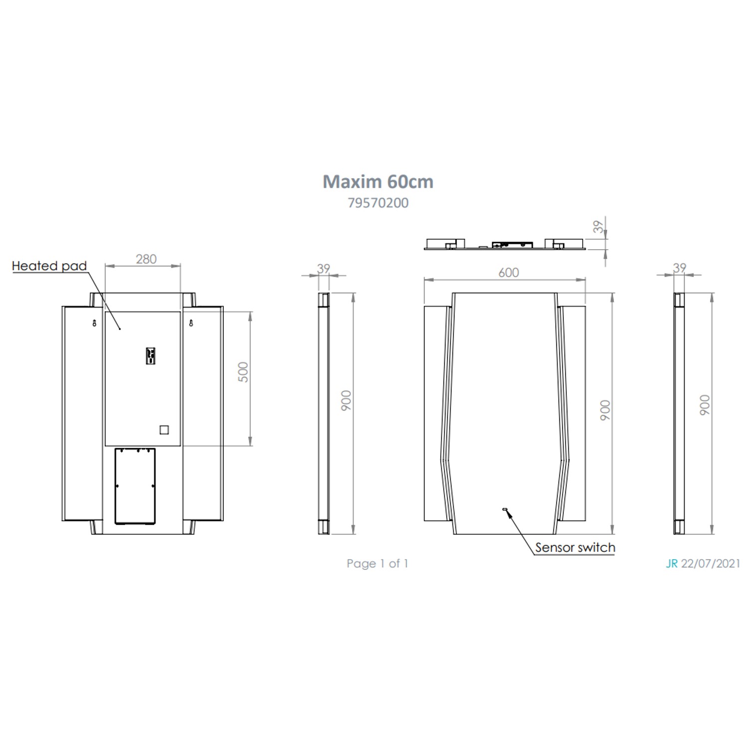 The Maxim 60 is a statement LED mirror that will be the focal point of any bathroom. The mirror has a unique design with 3 panels and has colour temperature changing LED illumination. This allows you to change the mirror form a warm to cool light. The integrated demist pad ensures the mirror face stays perfectly clear of steam and fog.