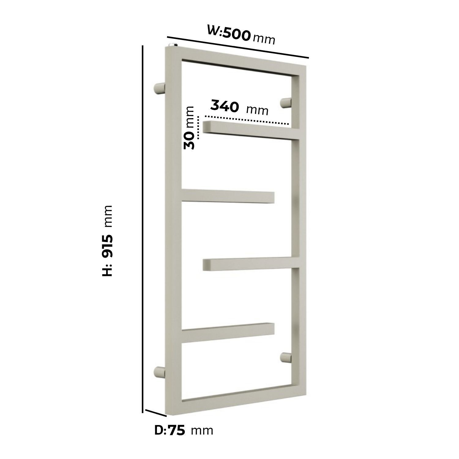 The Atka Beige Bathroom Towel Rail combines style and functionality, making it an exceptional addition to your bathroom. Its uniquely designed bars are perfect for hanging towels, ensuring they are neatly arranged and easily accessible. With a compact size, it's perfect for cloakrooms or smaller bathrooms, helping you maximize space without compromising on practicality. The durable steel construction guarantees long-lasting resistance to rust and corrosion, while the sleek beige finish provides a contemporary touch that seamlessly complements modern bathroom décor. Wall-mounted for convenience, it saves floor space and keeps your towels warm and cozy, adding a luxurious element to your daily routine. Plus, with a 5-year guarantee, you can enjoy peace of mind knowing it's built for lasting quality and reliability.