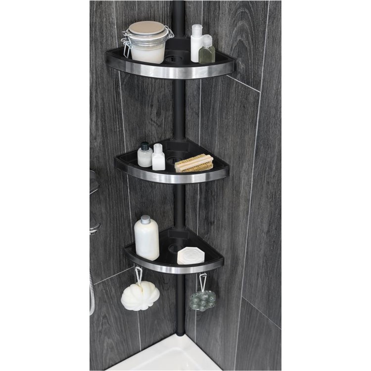 The Black floor to ceiling shower shelves feature a sleek and modern design with three tiers to save valuble shower space.