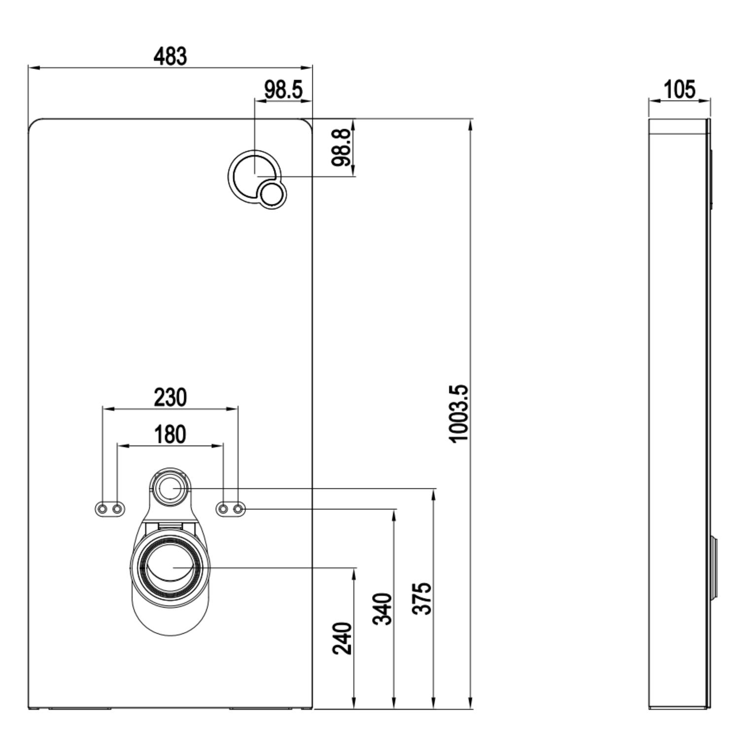 - Dimensions: H1003.5 x W483 x D105 mm