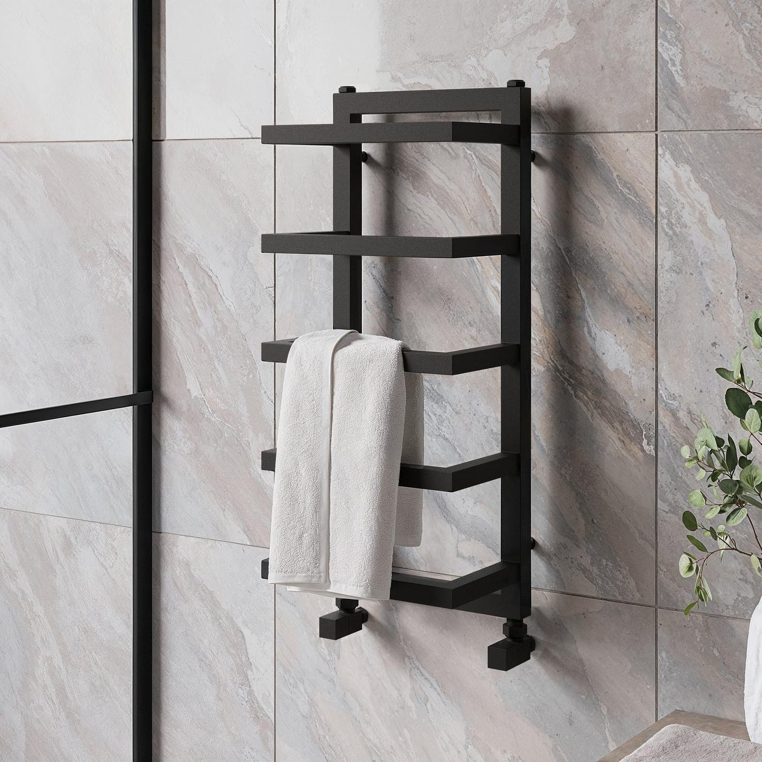 Multi-functional towel storage: Five bars act as open shelves - ideal for stacking, hanging and heating multiple towels at once.