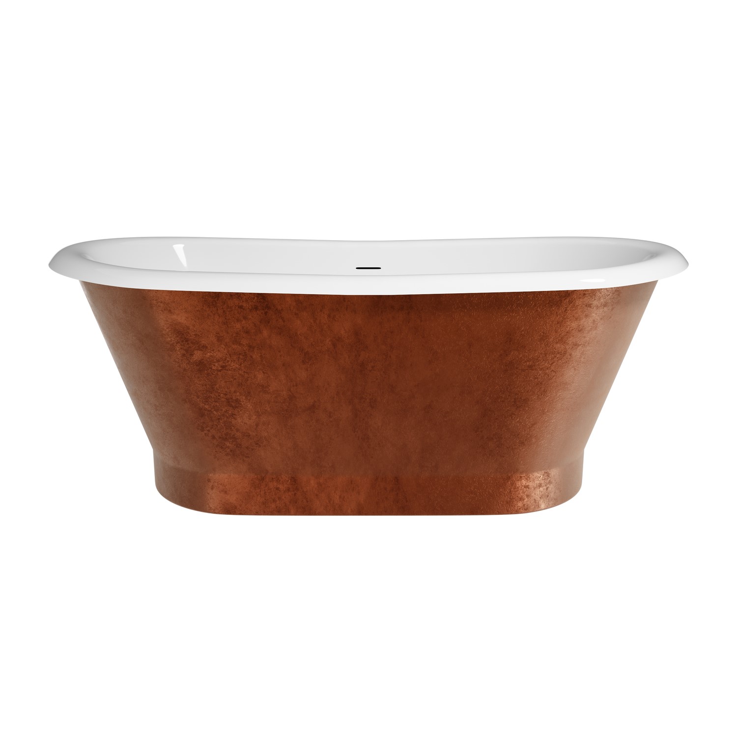 Transform your bathroom into a luxurious retreat with the Helmsley Copper Leaf Effect Freestanding Double Ended Bath. Featuring a striking copper exterior and glossy white interior, this bath blends traditional design with classic comfort. Offering class and sophistication, its smooth curves and double-ended shape create a minimalist tub that can be relaxed in at either end. Crafted from durable acrylic, the bath is designed for long-lasting performance and easy maintenance. The central overflow and waste are built-in, with no pre-drilled tap holes, and the waste, finished in glossy white, coordinates beautifully with any brassware finish. Its spacious design and 212L water capacity provide the perfect space for relaxation, while the included feet and fittings make installation a breeze. With a 5-year warranty, the Helmsley bath guarantees both style and peace of mind.