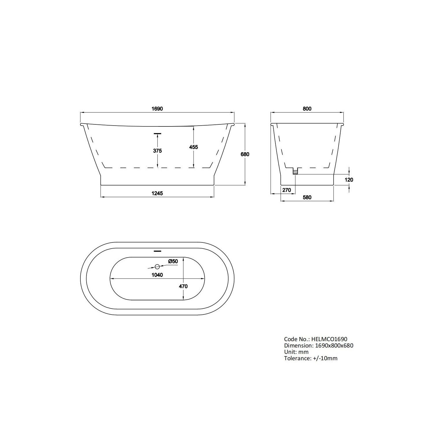 - Dimensions: L1690 x H680 x W800 mm