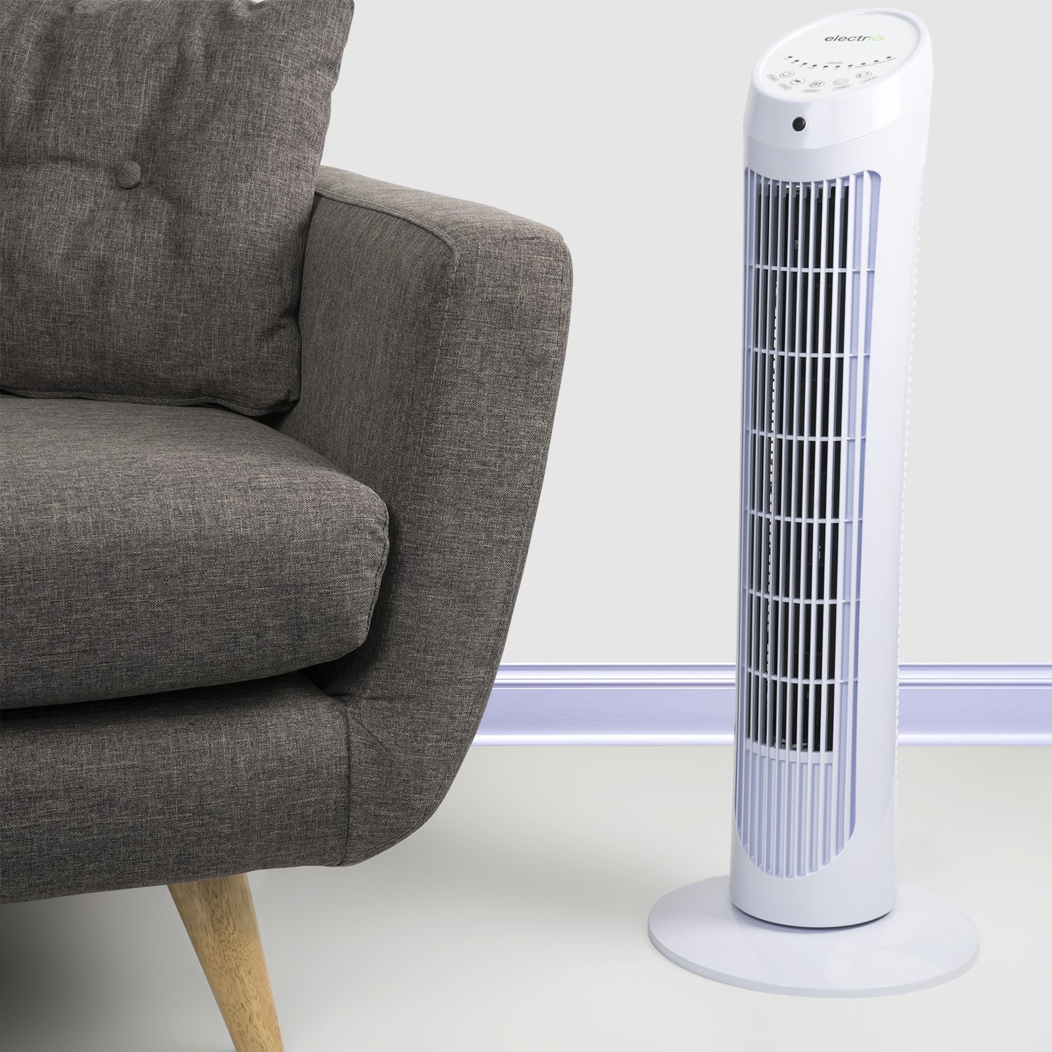 The control panel is located at the top of the tower and is made up of five buttons and a series of indicators, so you can quickly set the fan to your preferred setting in a couple of clicks. Or if you prefer, you can operate the fan using the remote control that comes supplied and have it set to cool you from your bed or sofa! The fan comes ready to use straight out of the box and doesn't require any permanent installation. And, because it's slim and lightweight enough to carry, you can move it from room to room with ease.