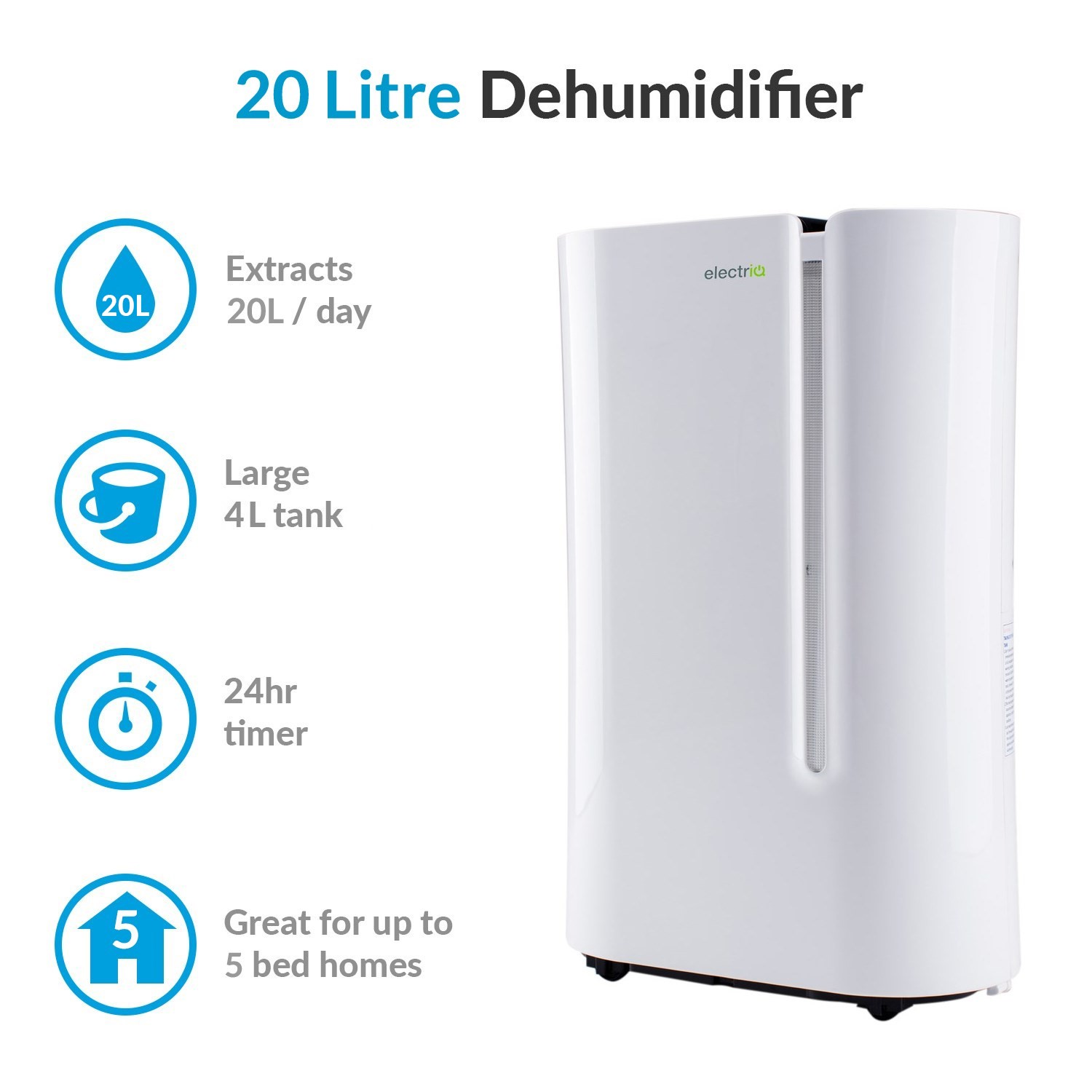 Damp and mould can be very damaging to your home and health - luckily this can be prevented with the electriQ CD20L Dehumidifier. This compact yet powerful 20L Dehumidifier helps create a healthier and more comfortable environment for houses with up to 5 bedrooms by removing the excess moisture and humidity that can encourage the growth of common allergens.