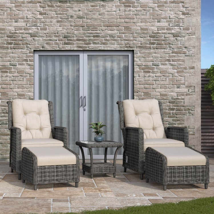 Recline, relax and enjoy your garden this summer with the Aspen garden lounger set. As comfortable as the armchair in your living room, the chairs in this set give you an excuse to sit outside at every opportunity. The back reclines, giving you the ability to find the most comfortable position for you, whether you're catching some rays, enjoying a drink or reading a good book. And, with two padded footstools included, you can put your feet up and relax, perfect after a long week at work. The table gives you the perfect spot to stand your drink and Bluetooth speaker, helping you to make the most of the nice weather.