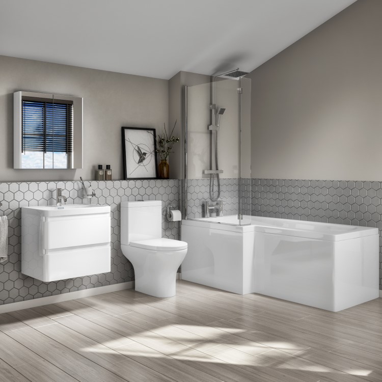 - Bath Type: Left Hand L-Shaped Shower Bath