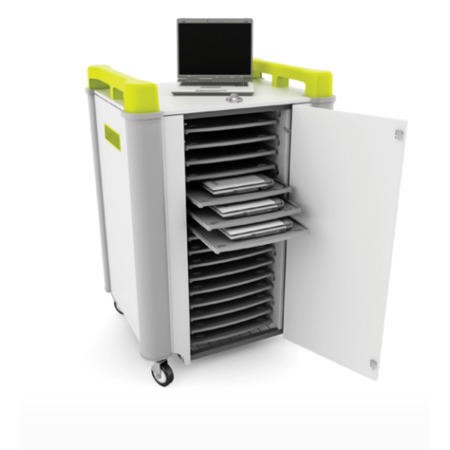 - Smooth rounded corners with shock absorbing bumpers to protect laptops inside and the school walls during movement from classroom to classroom.