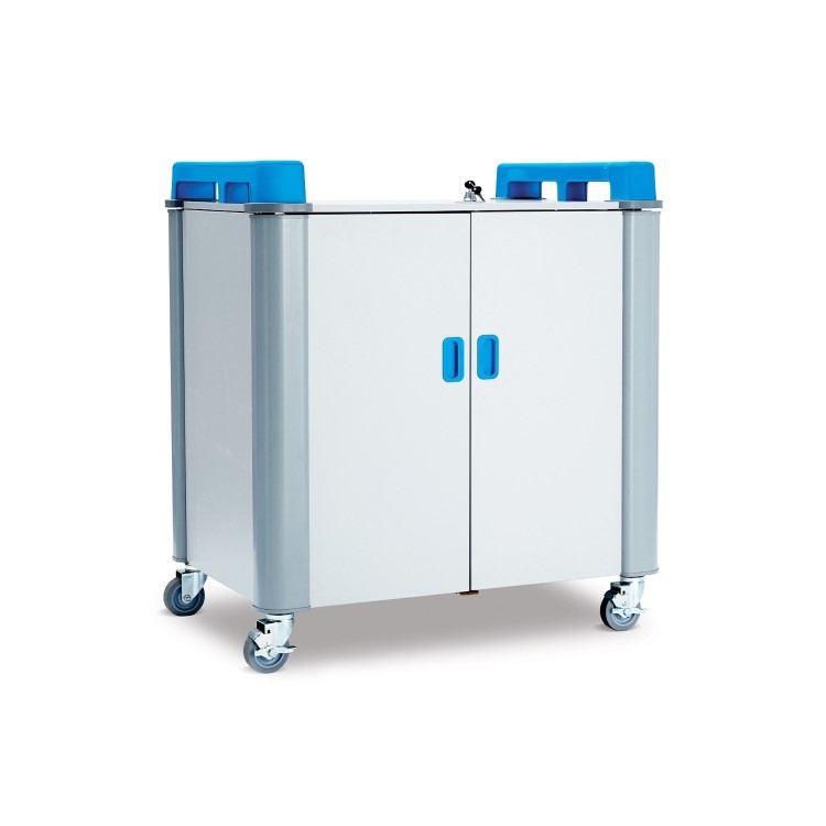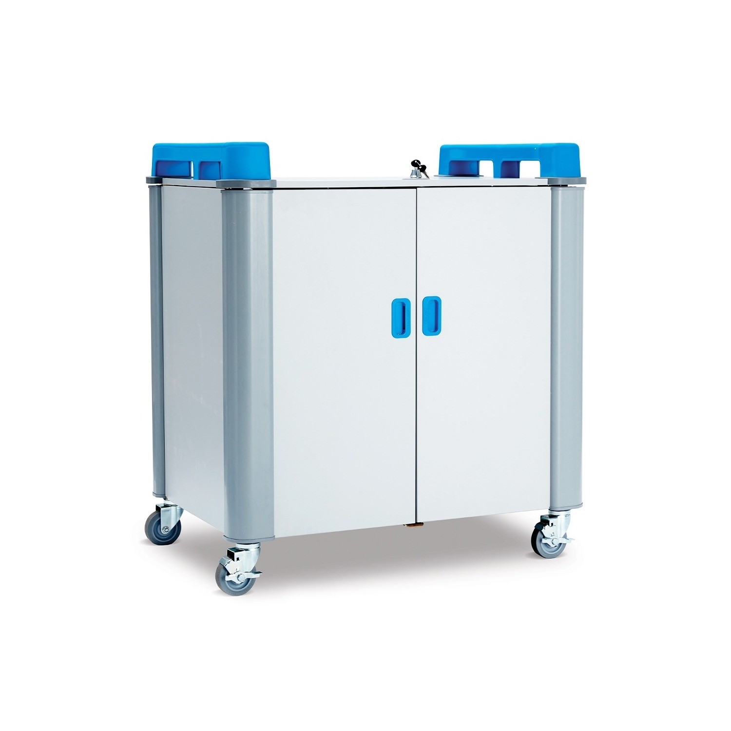 Built-in heat sensor will shut off power if a device overheats or if interior temperature reaches 32C/90F degrees to prevent risk of fire or damage to devices Silent ventilation system includes side and rear vents plus a uniquely designed weldmesh base to keep devices cool with constant air circulation without the need for a noisy fan that can spread germs Locking system mounted on top surface to avoid keys snapping inside lock during movement Dual point locking system, with keys provided, to secure at the top and bottom of both device and power compartment to prevent theft, damage or tampering Inset door handles prevent protruding parts eliminating breakages Safety tested and certified by the independent Underwriters' Laboratory (UL)