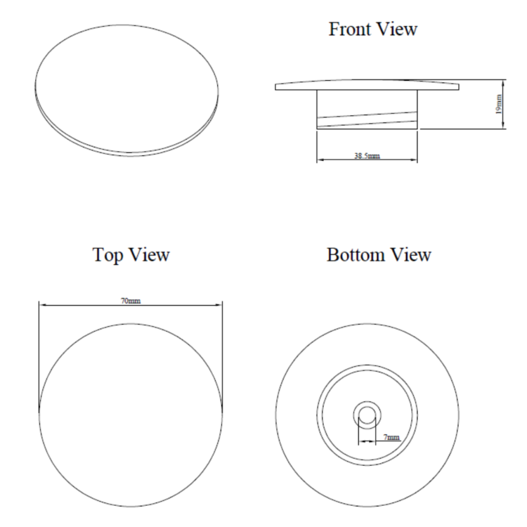 - Dimensions: L70 x W70 x H19mm