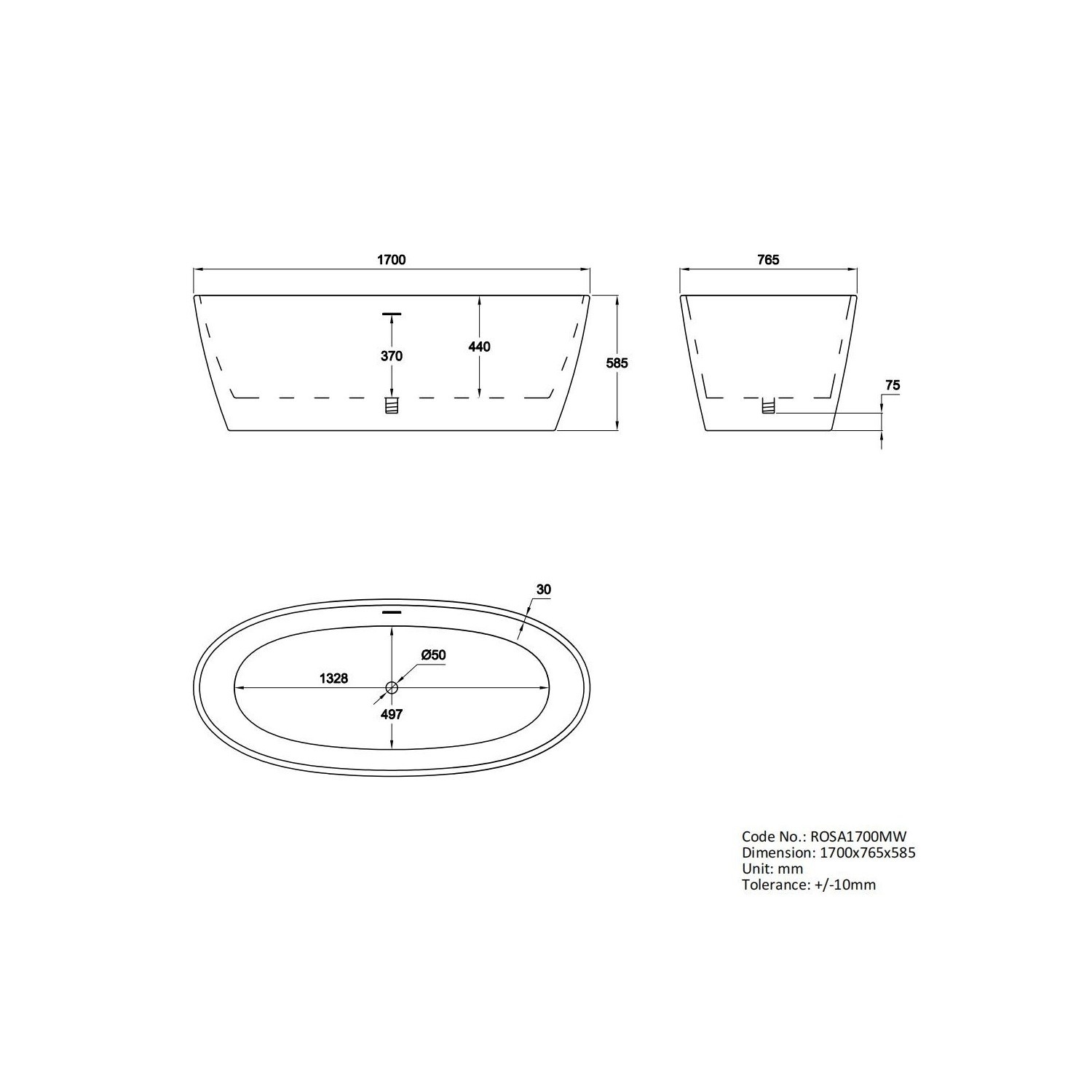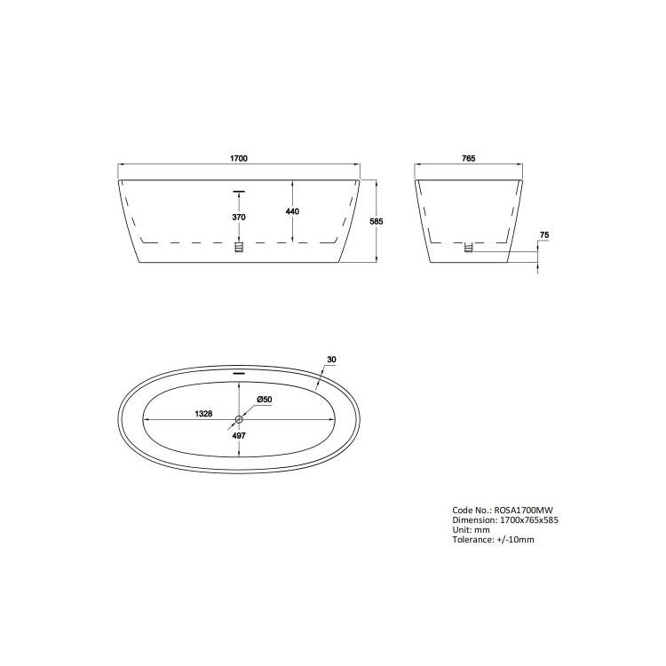 - Dimensions: L1700 x H585 x W765 mm