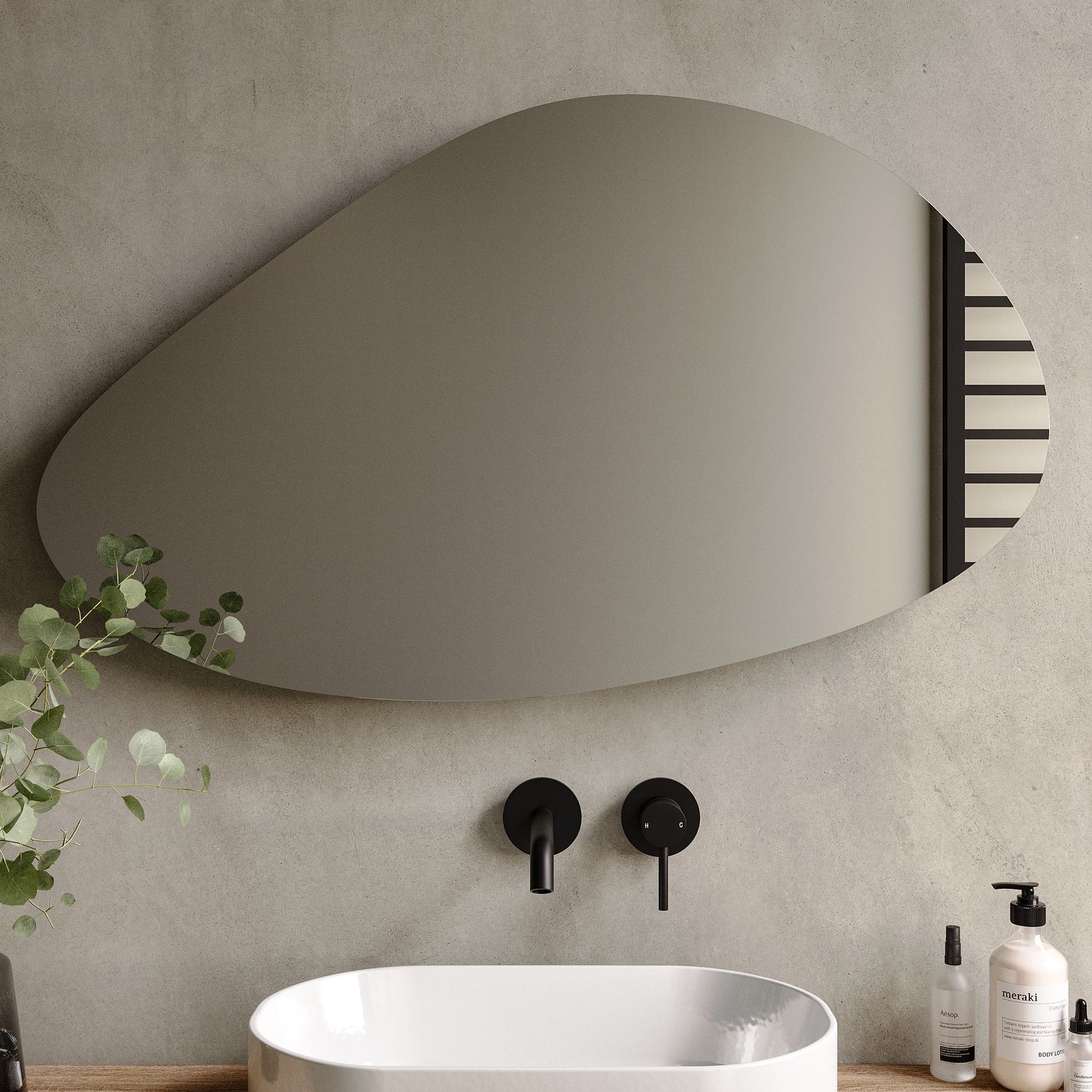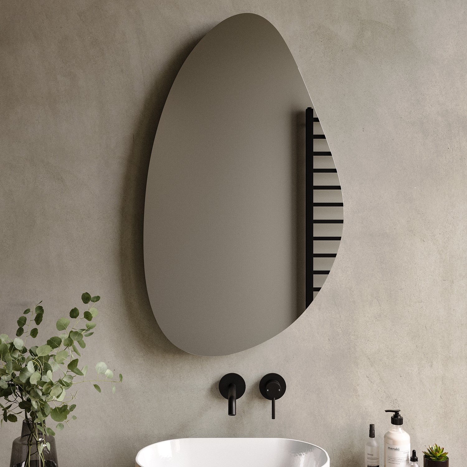 Transform your bathroom with this stunning Apollo battery operated mirror. The irregular organic pebble shape creates a striking focal point whilst the backlit LED illumination provides excellent task lighting without the expense of mains electricity. This frameless mirror is ideal for larger bathrooms. Since it is battery operated it's easy to install and you can install it anywhere you like without having to worry about wiring it in. Not only is it simple to install, but it also comes with the appropriate screws and wall plugs.