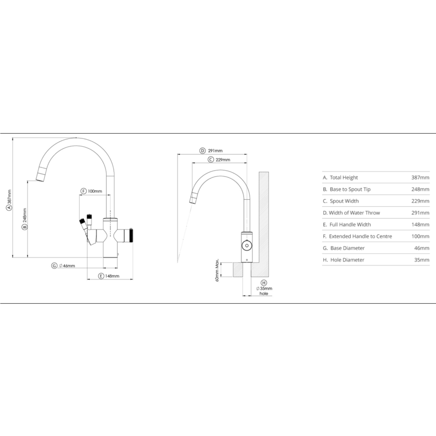 - Filtered & Boiling Tap Tail Length: 1000mm