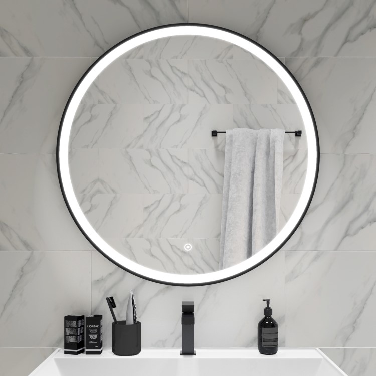 Add the perfect finishing touch to your space with this matt black round mirror illuminated frame. With a simple touch sensor switch and two mood settings between warm and cool, it provides an ambient glow which is not only aesthetically pleasing but energy-saving too, for your peace of mind. It's IP44 rated, so it's safe to use in the bathroom. The demist pad comes in super handy if you're indulging on a hot bath or shower as it stays steam-free ready to use, so there's no need to wipe down.
