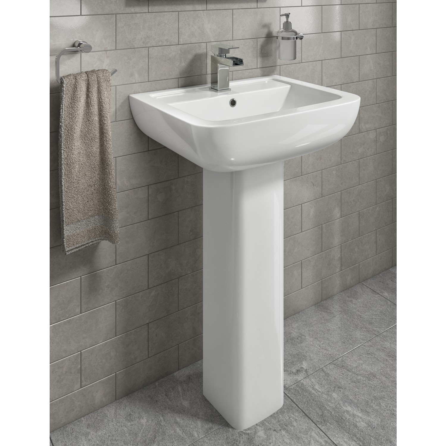 This stylish bathroom sink is the perfect piece for any modern bathroom. It features a large basin with matching smooth full pedestal. The basin has one tap hole; the tap isn't included, so you're free to choose the mixer tap of your choice.