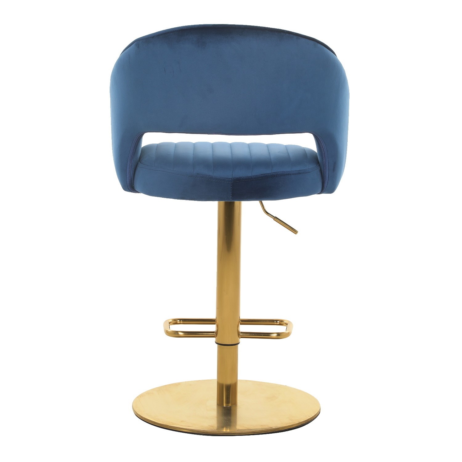 These navy velvet bar stools features a stunning brushed brass footrest and base is modern and on trend. The footrest is a great addition to this stool as it proves added comfort. Designed to be comfier for longer, the seat is foam filled, perfect for perching while you eat, drink or work. The vertical stitching detail and luxury navy blue and brass finish add the perfect modern touch to your space.