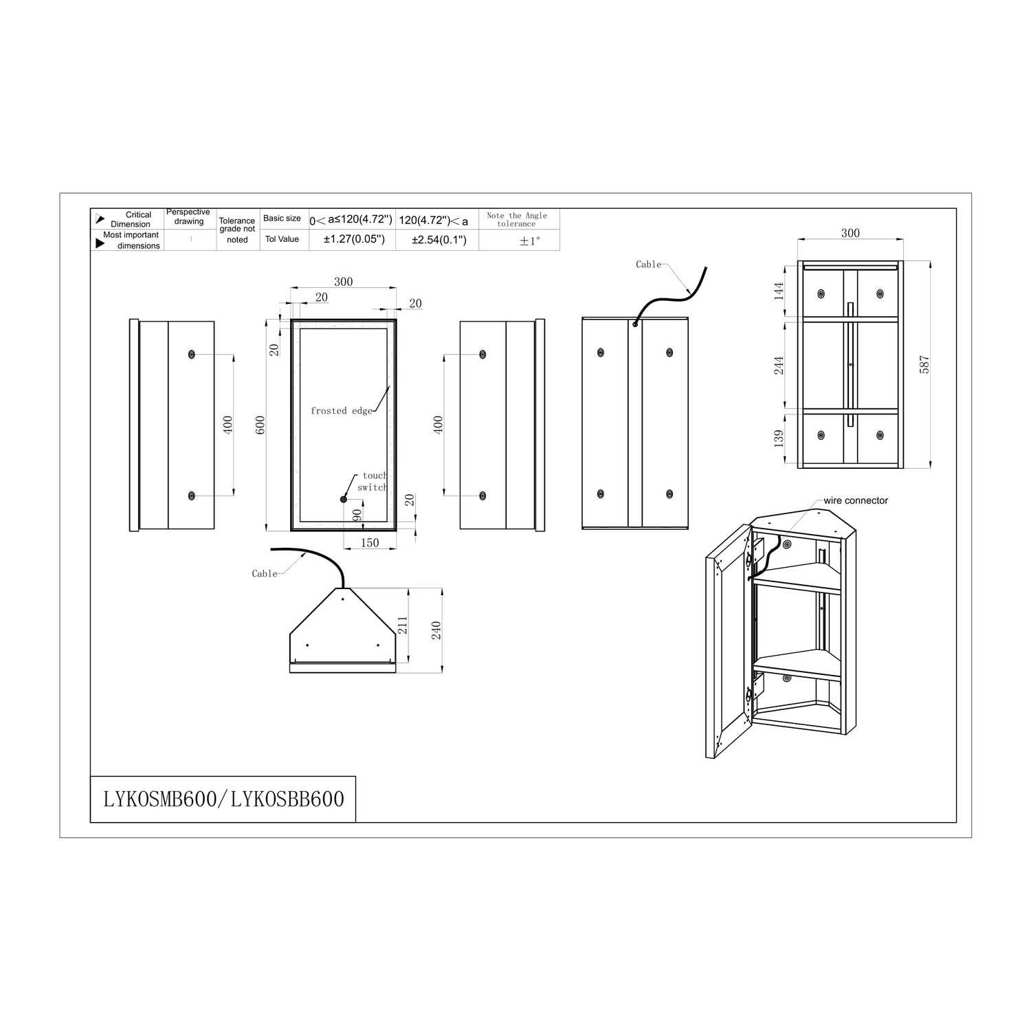 - Cabinet Dimensions: W300 x H600 x D240 mm