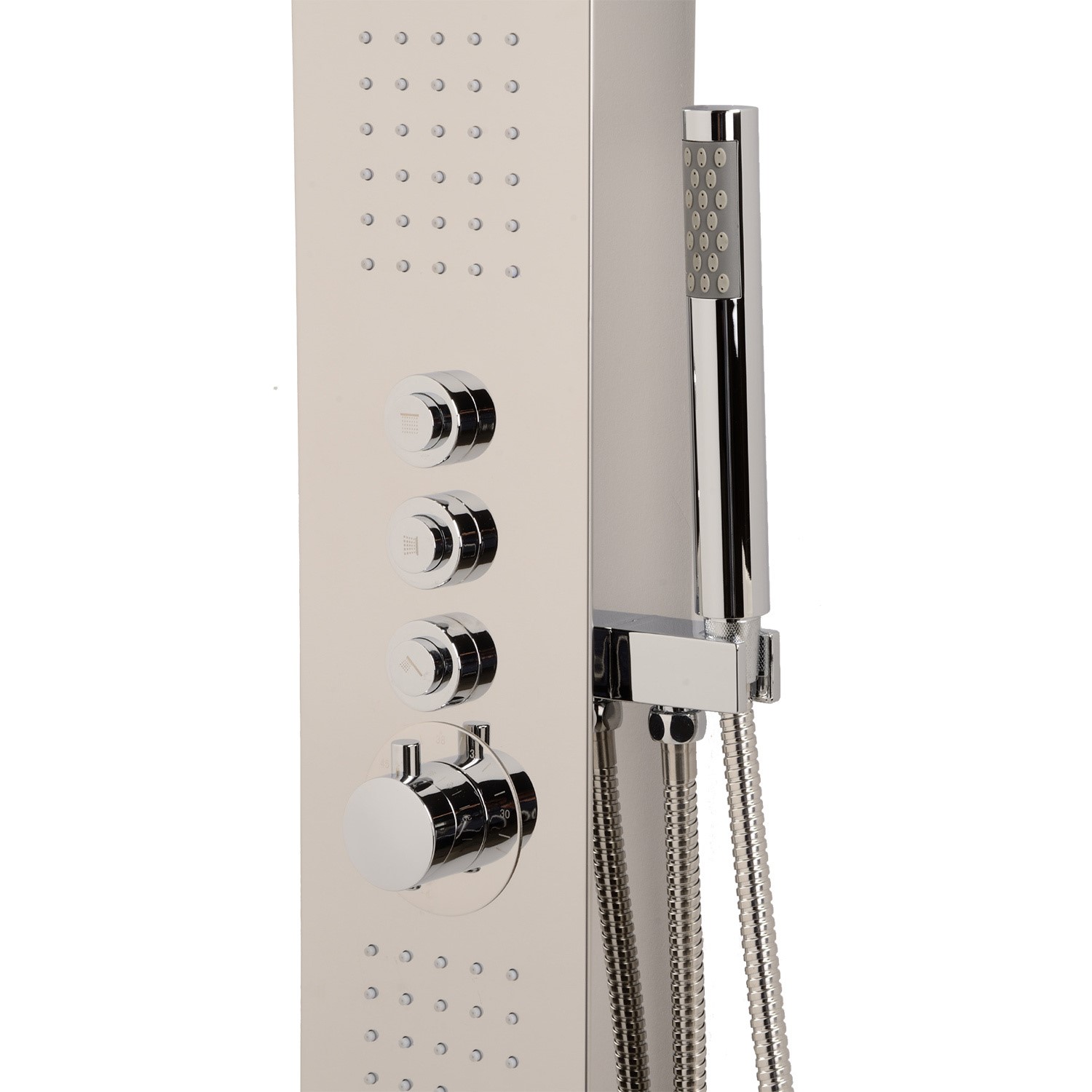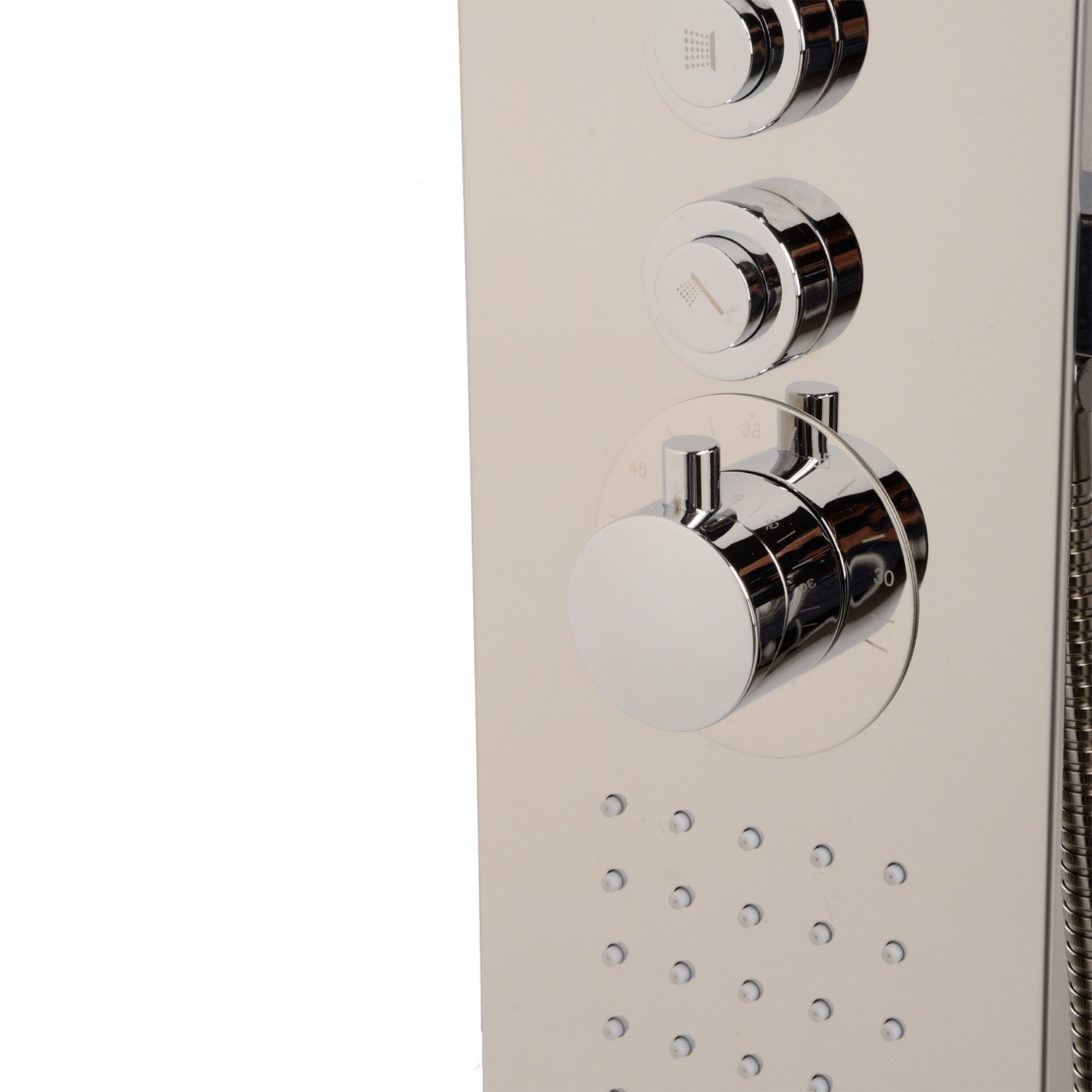 The Thermostatic Catalina Steel Shower Panel is an affordable way to update your shower bathroom suite without having to compromise on style or quality. Designed with a curved head and controls but defined by strong lines, this panel will suite a wide array of bathroom styles. This stunning shower comes complete with a handset and body jets, giving you a wide range of showering options which are easily controlled with a push button system. This panel has been manufactured from high quality stainless steel and is adorned with a timeless steel finish. Shower Panels add a touch of luxury compared to the traditional electric shower or riser rail kit and this particular panel will look great in any shape or style of enclosure from quadrant to the contemporary walk in. Complete with a three year manufacturers guarantee, this product promises not to let you down.