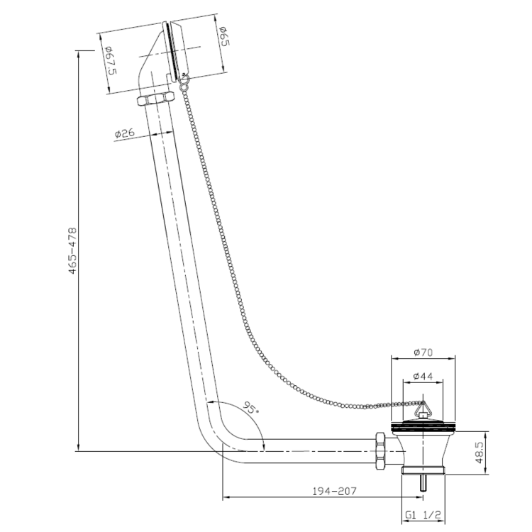 - Dimensions: H465-478 x W26 x Base length 194-207mm