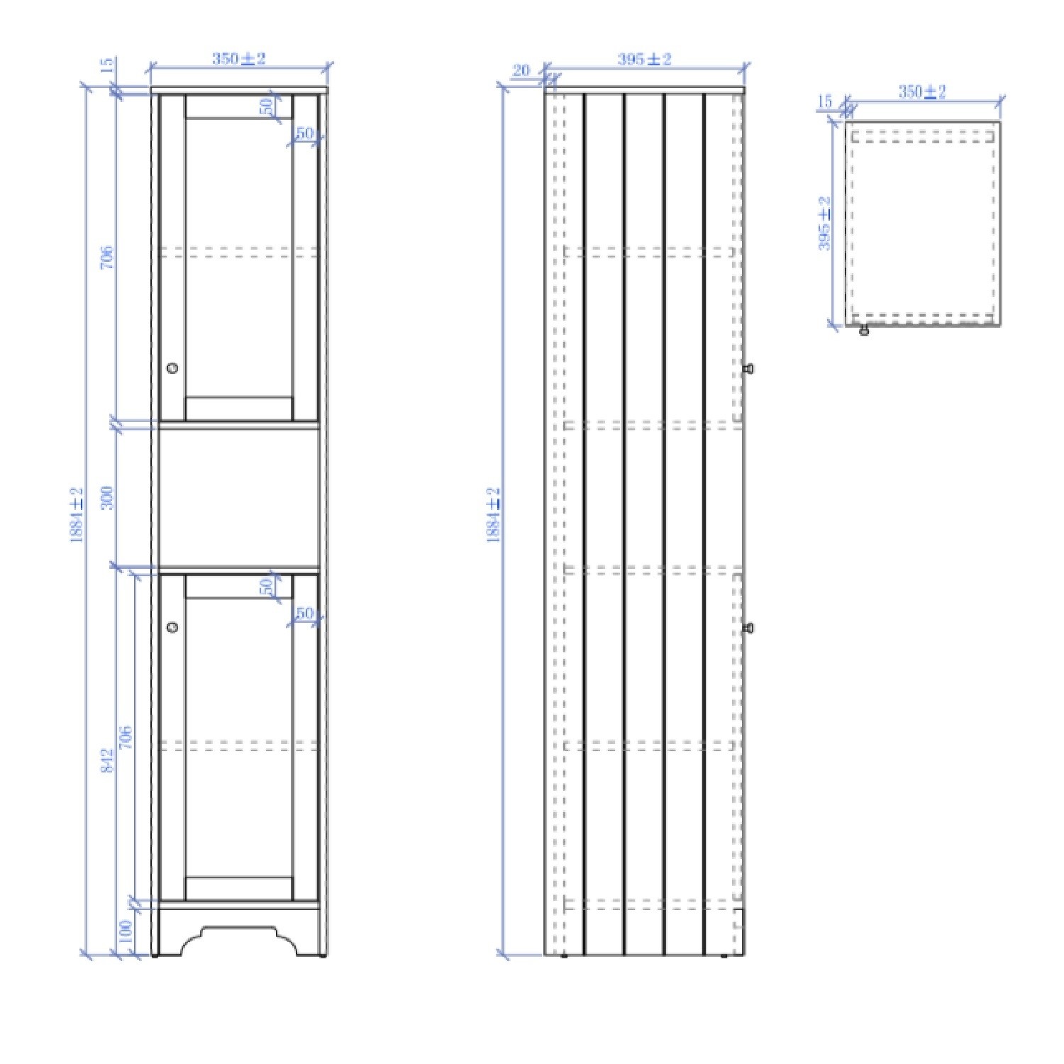 - Dimensions: H1884 x W350 x D395 mm (give or take -/+ 3mm per measurement)