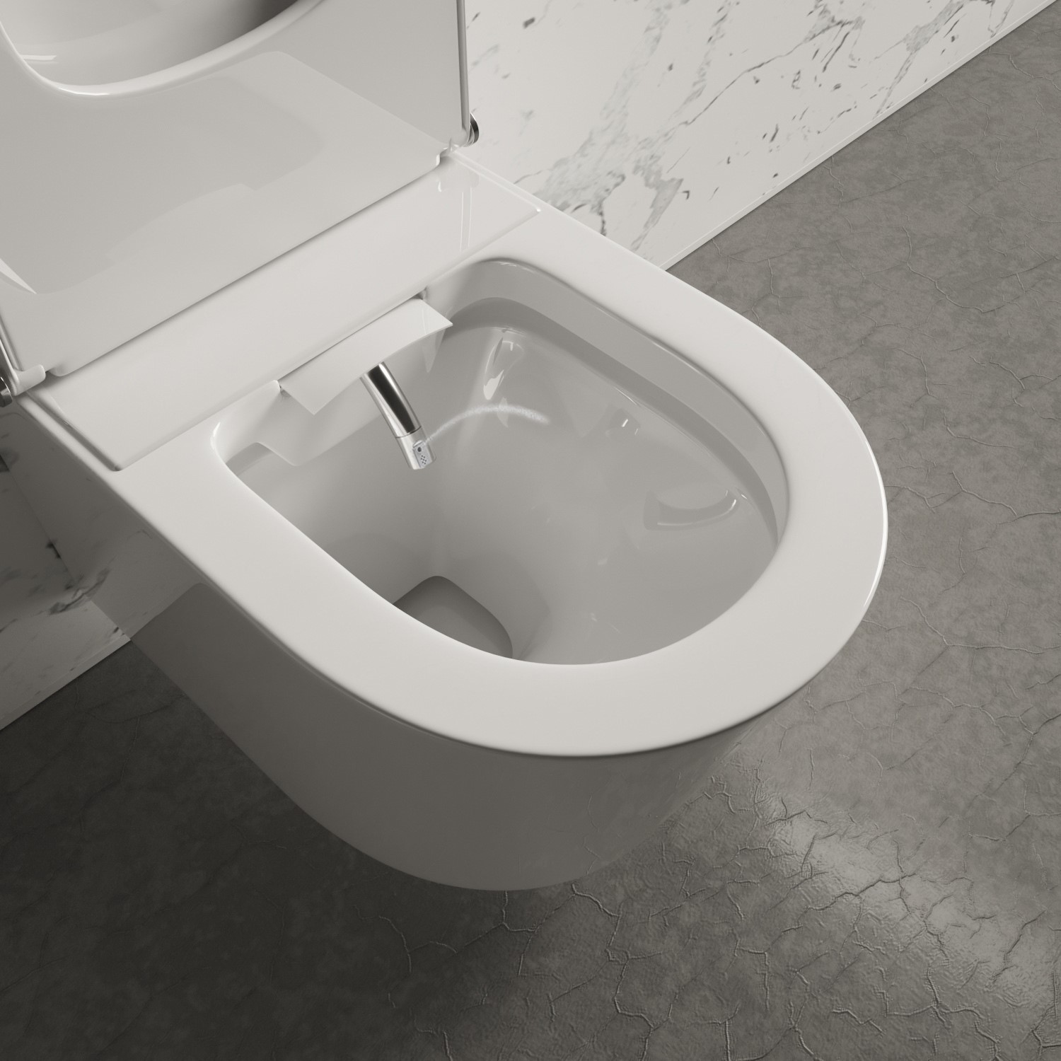 So how is it kept clean? Well, the pan is rimless, which means there's nowhere for bacteria, germs and limescale to lurk, making it much easier to clean. The spray arm and nozzle is self-cleaning and given a thorough rinse before each use or every 72 hours if unused. Best of all, the whole functionality is completely hidden within the ceramic bowl as well - Keeping this design as smooth and clean as ever.