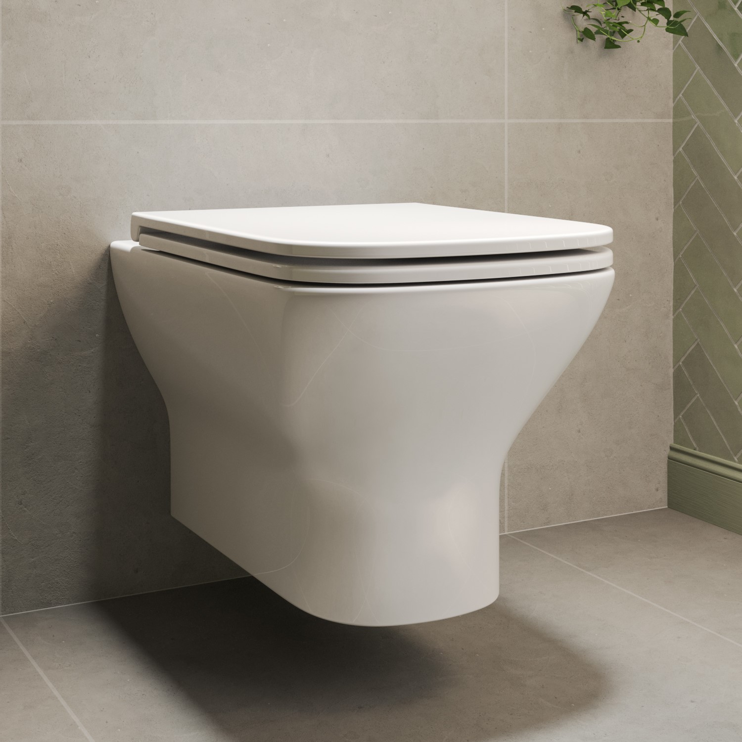 This wall hung toilet with a square pan design has been manufactured from high-quality ceramic and makes a perfect addition to any bathroom. It's much more hygienic too thanks to the rimless design, meaning when you flush, water is propelled around the bowl, giving it a more thorough clean. Also, it's easier to clean as it's off the floor, giving the effect of a floating toilet.
