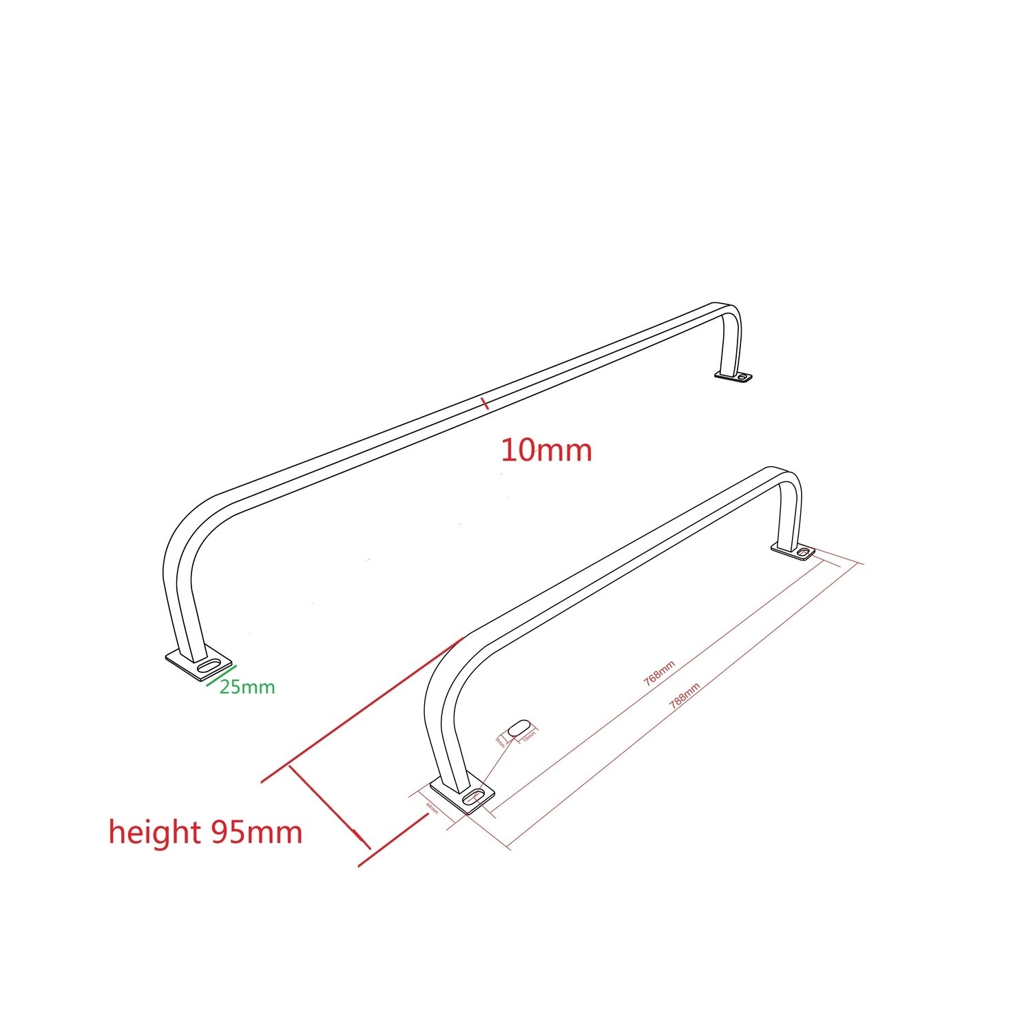 - Towel rail dimensions: H95 x W788 x D10mm