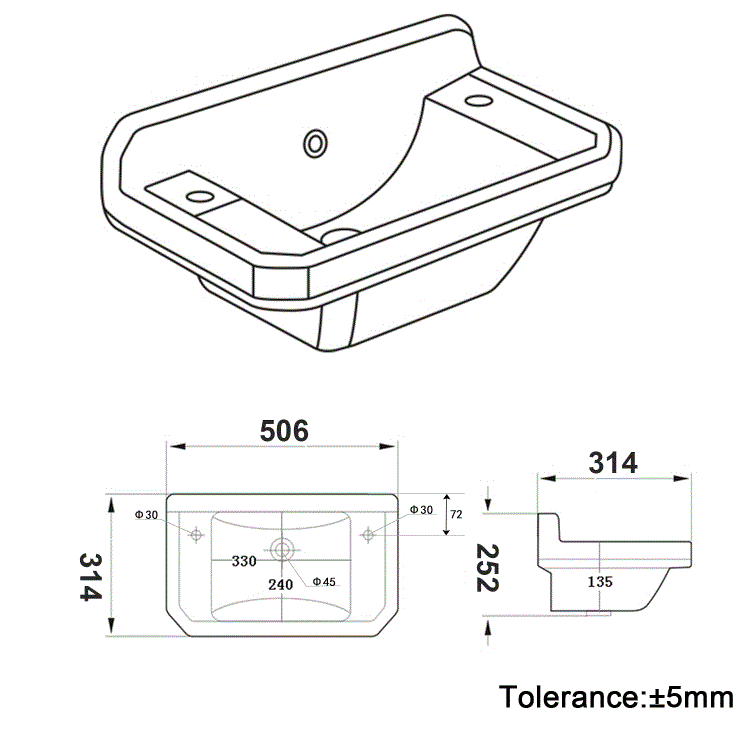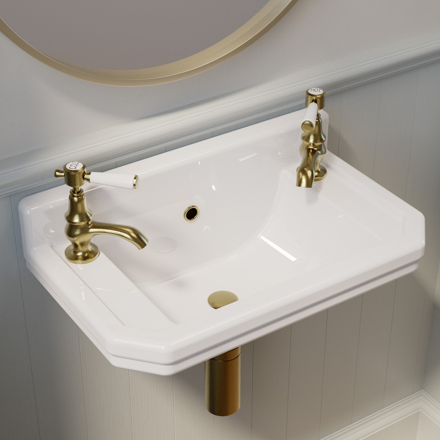 - Traditional cloakroom wall hung basin with 2 tap holes