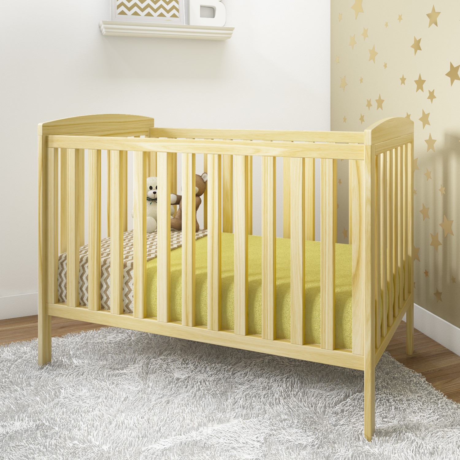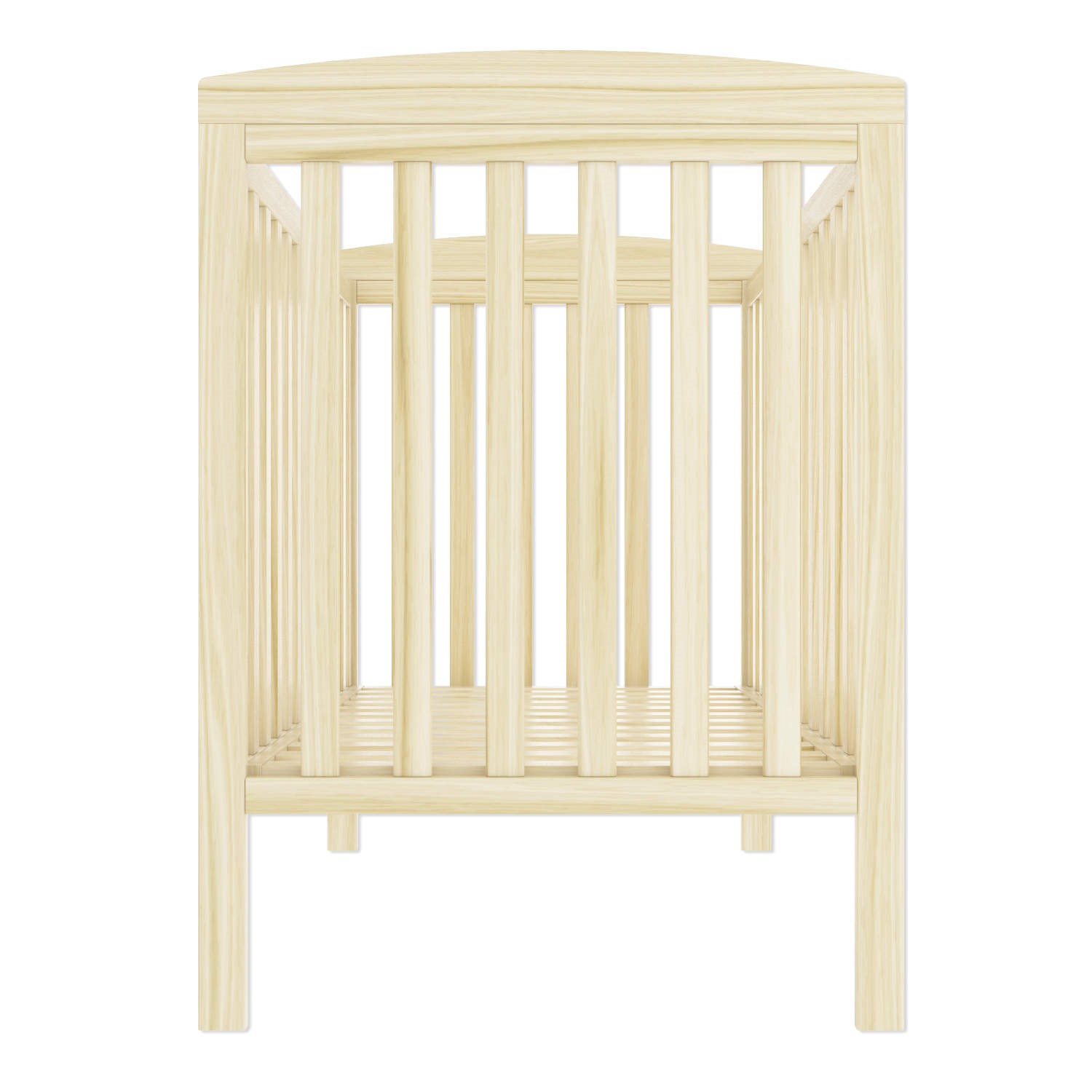 The Oscar & Ivy cot is hardwearing thanks to the solid pine design and the neutral finish of the cot makes it easy to coordinate with all your charming baby bedding. The slatted design is not just for style but also enables you to have a 360 degree view of your child, giving you peace of mind.