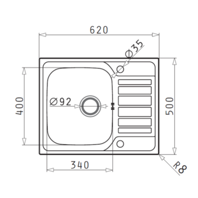 - Overall Sink Dimensions: 620 x 500 x 180mm