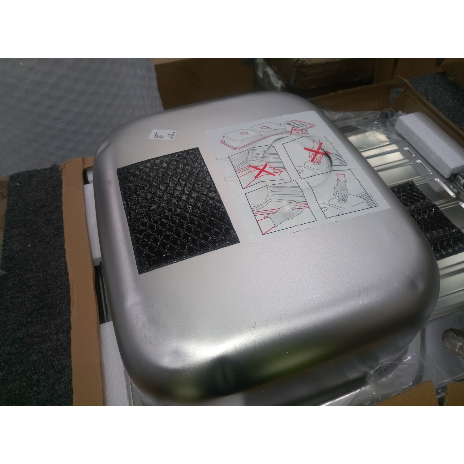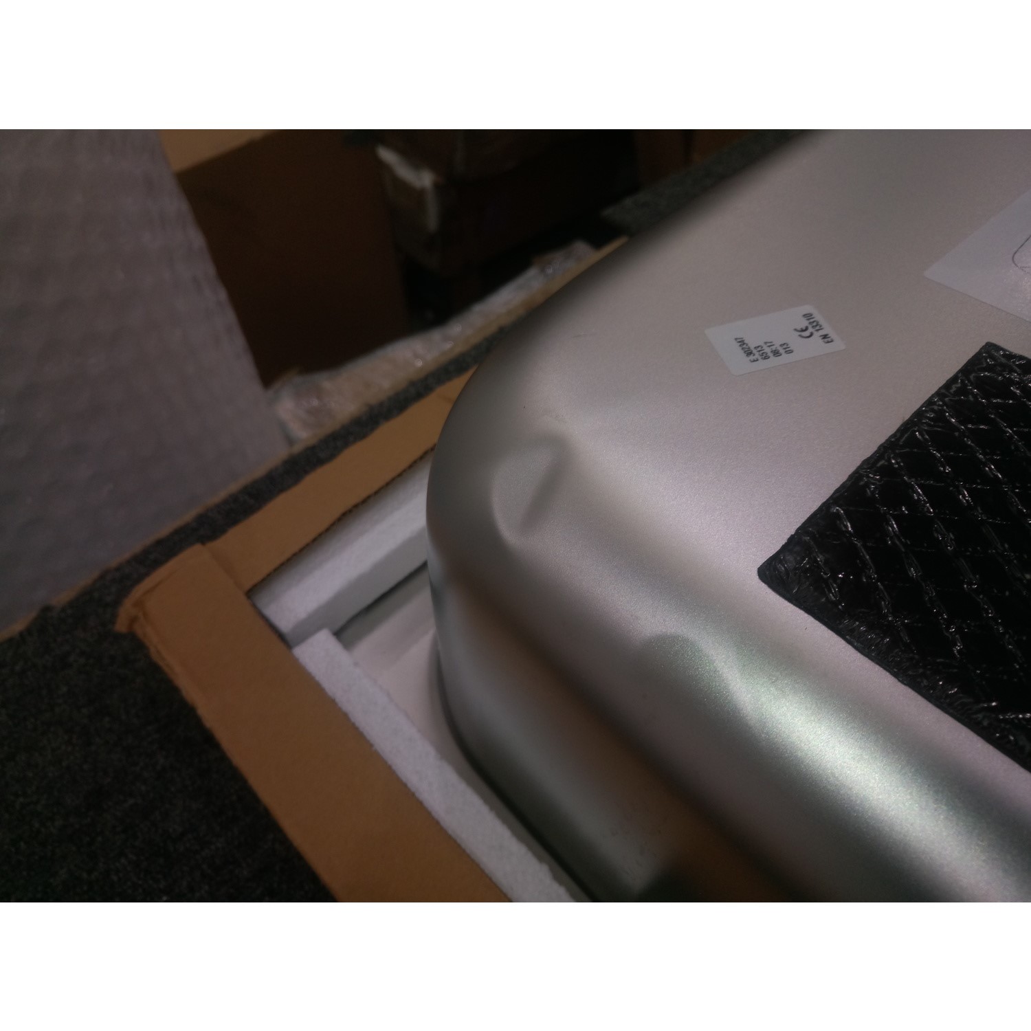 No damages to the sink except small dents onn the bottom of the bowl