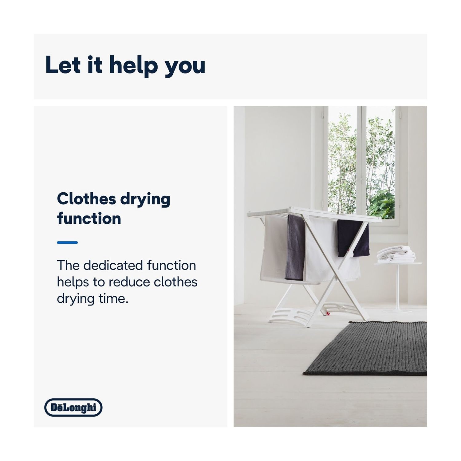 - The laundry function’s automatic settings optimise ventilation speed and dehumidifying capacity to dry clothes