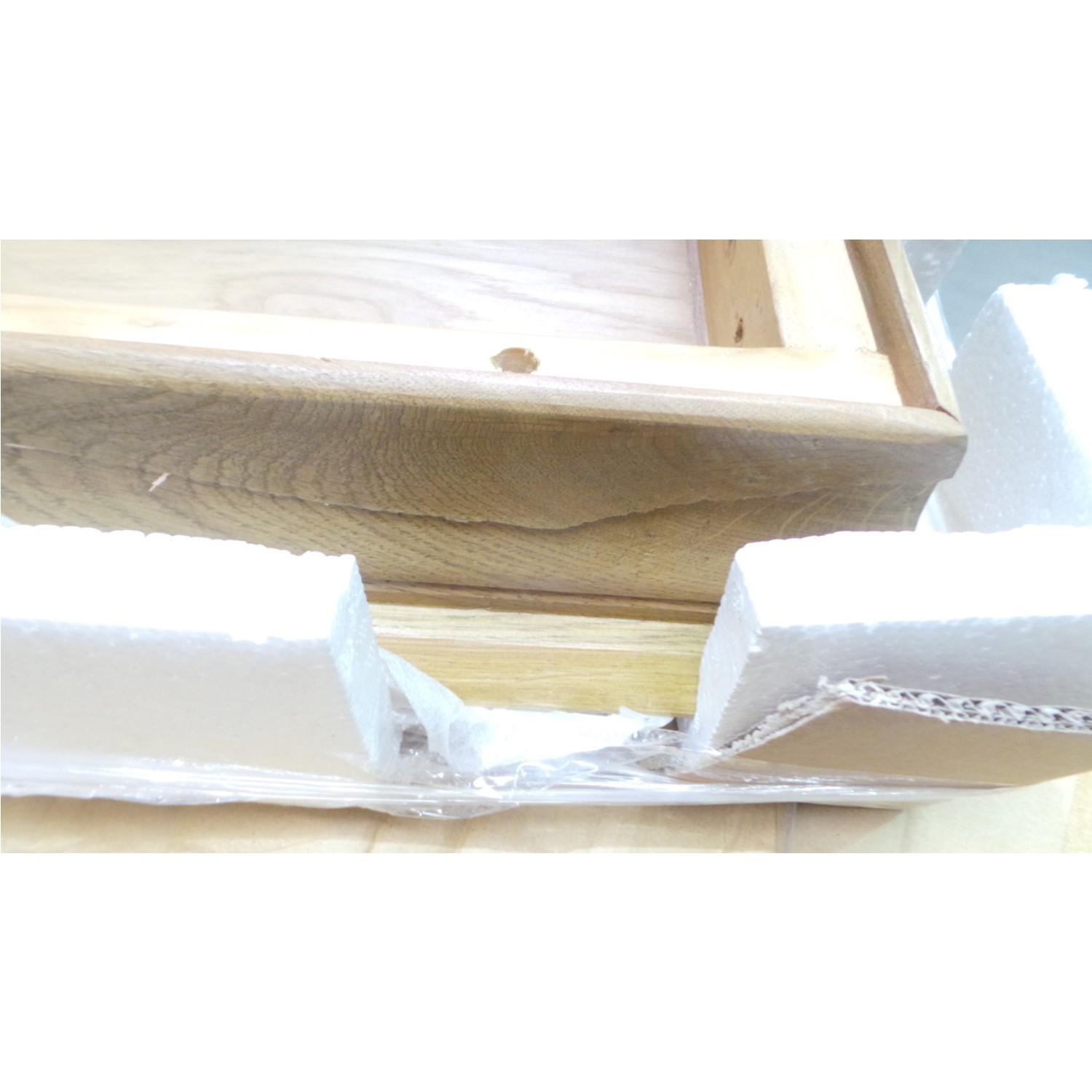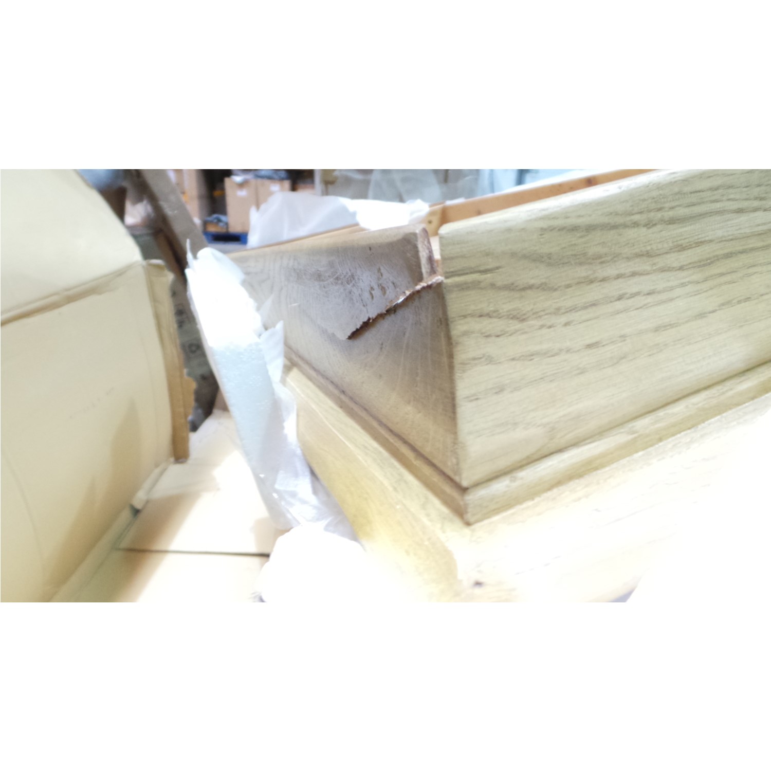 The Wardrobe has a crack on the front top panel which will be noticeable once assembled. Please see images for more information.