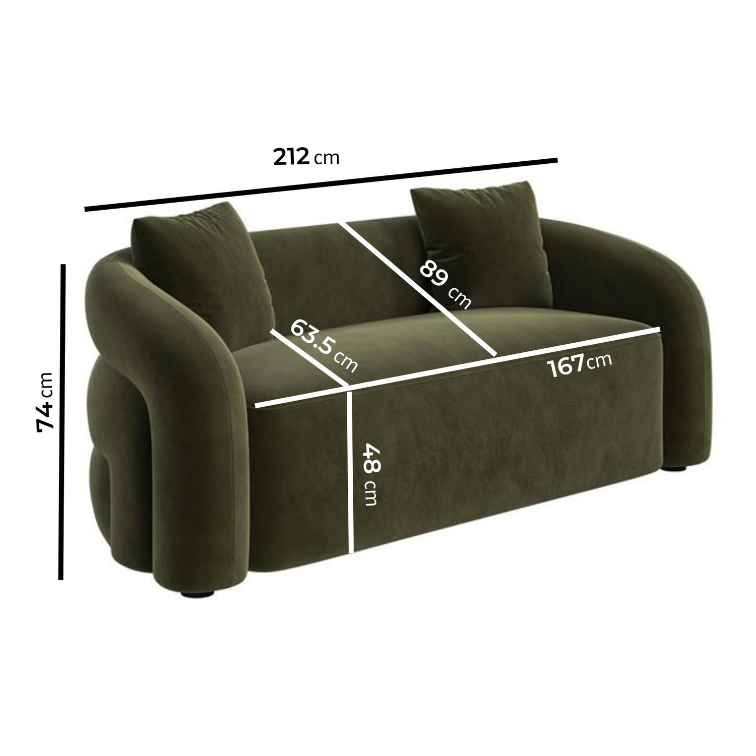 - Dimensions: W212 x D89 x H74 cm