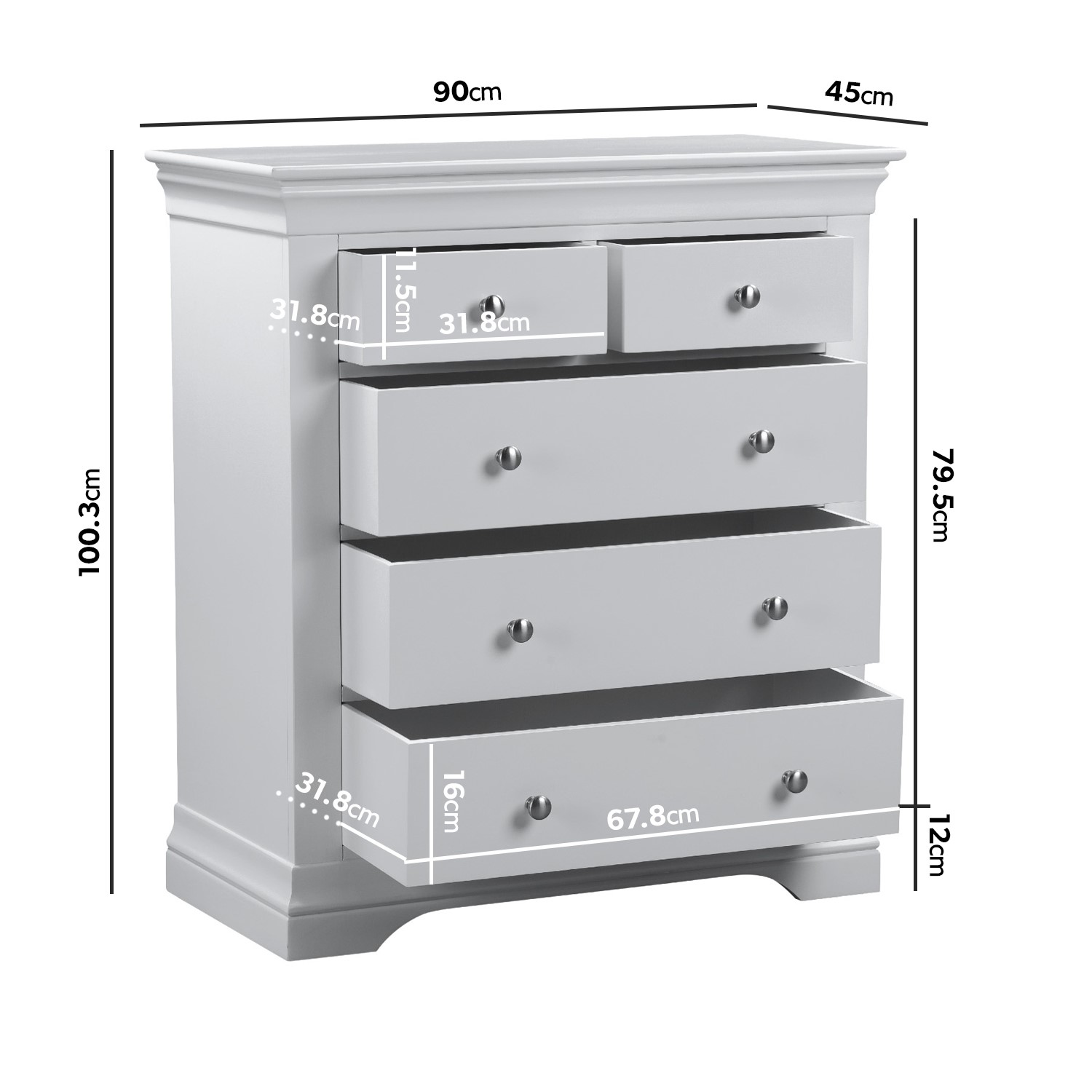 - Dimensions: W90 x D45 x H100.3 cm
