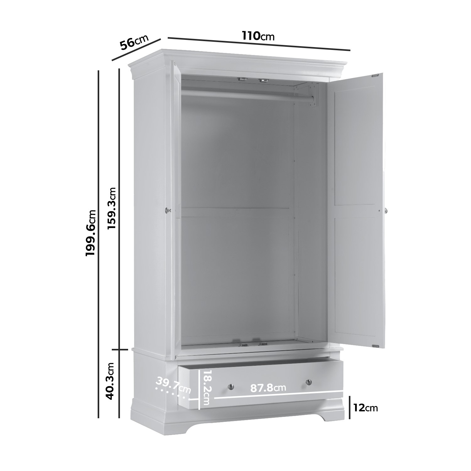 - Dimensions: W110x D56 x H199.6 cm