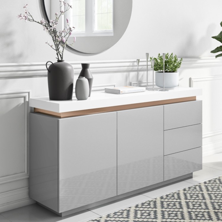 Create an instant focal point with this luxurious sideboard. Beautifully designed with an eye-catching brass inlay and many storage options, it would be perfectly placed in any living space. With push-open mechanisms, a single touch anywhere on the doors or drawer fronts is all that’s required.