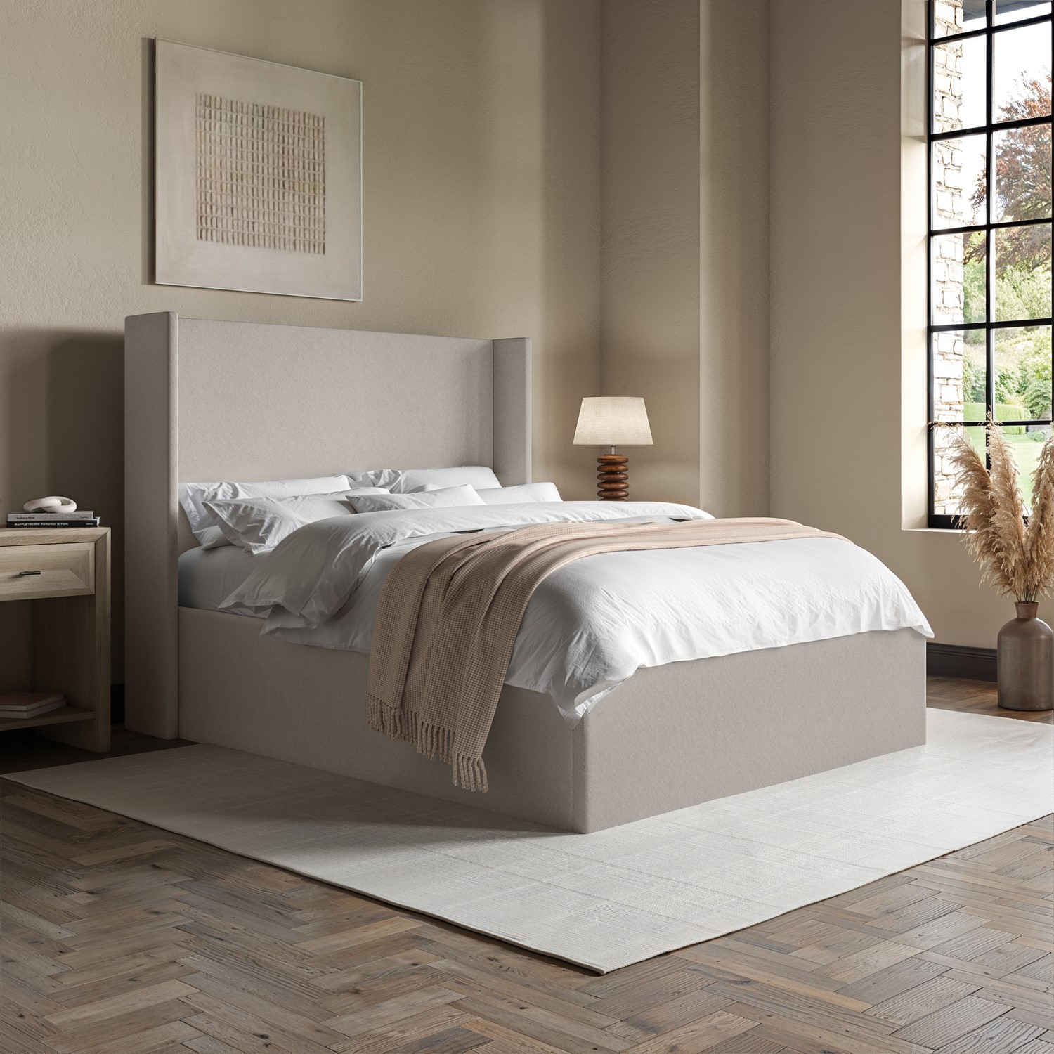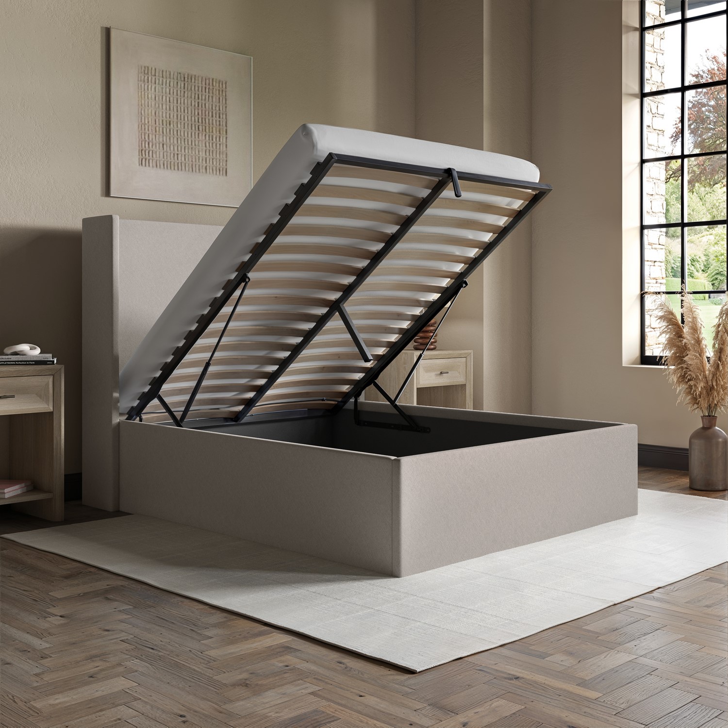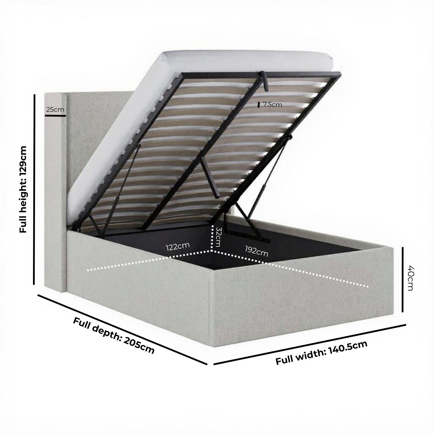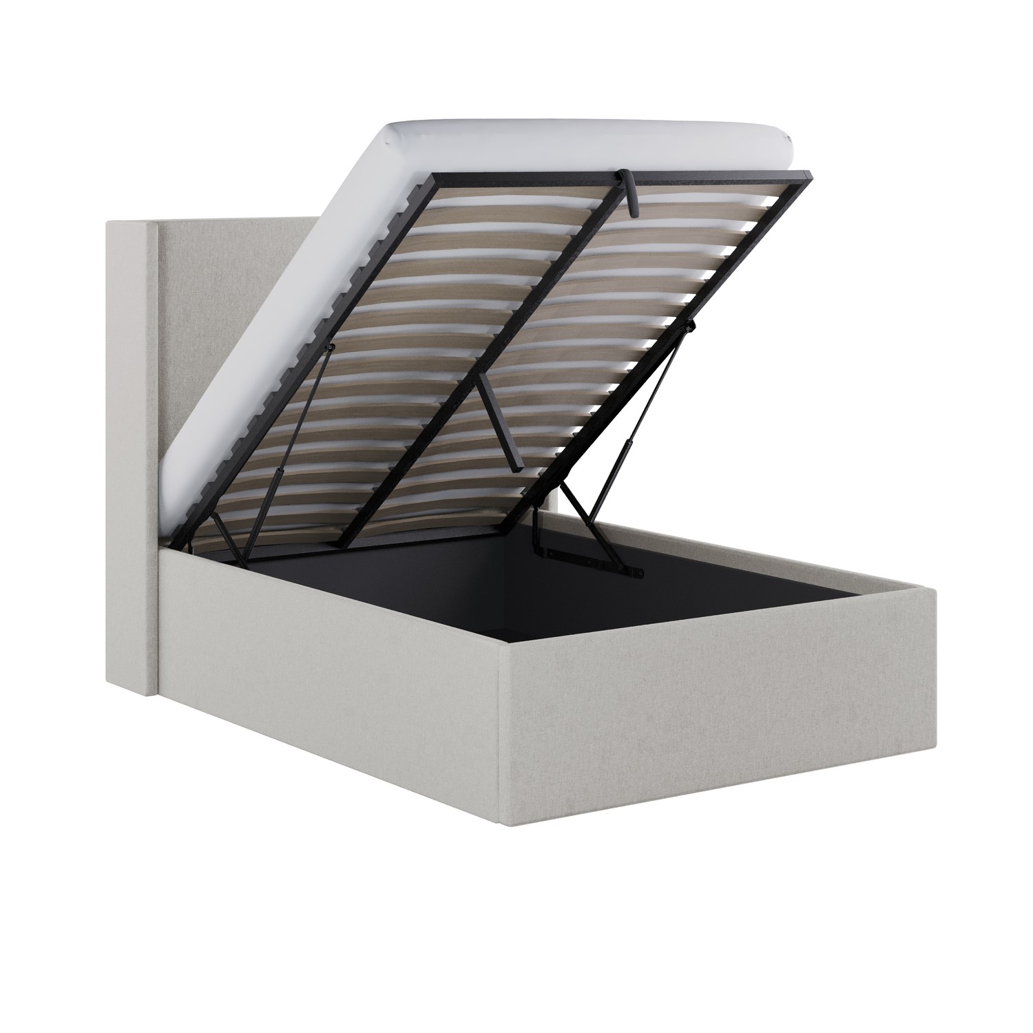 The Loxley Ottoman Bed is the ultimate blend of minimalist design and everyday practicality. Upholstered in luxurious, neutral grey chenille, it brings a soft, modern elegance that suits any decor style. The padded wingback headboard provides both comfort and a sophisticated focal point, while the smooth gas-lift mechanism reveals a spacious fabric-lined ottoman storage base, ideal for keeping your room clutter-free and your belongings neatly protected. It features a sprung slatted base for flexible mattress support and improved airflow, providing a cooler, more comfortable sleep. This bed is designed to fit a UK standard small double-size mattress, which is not included, allowing you the freedom to pair it with a mattress of your choice.