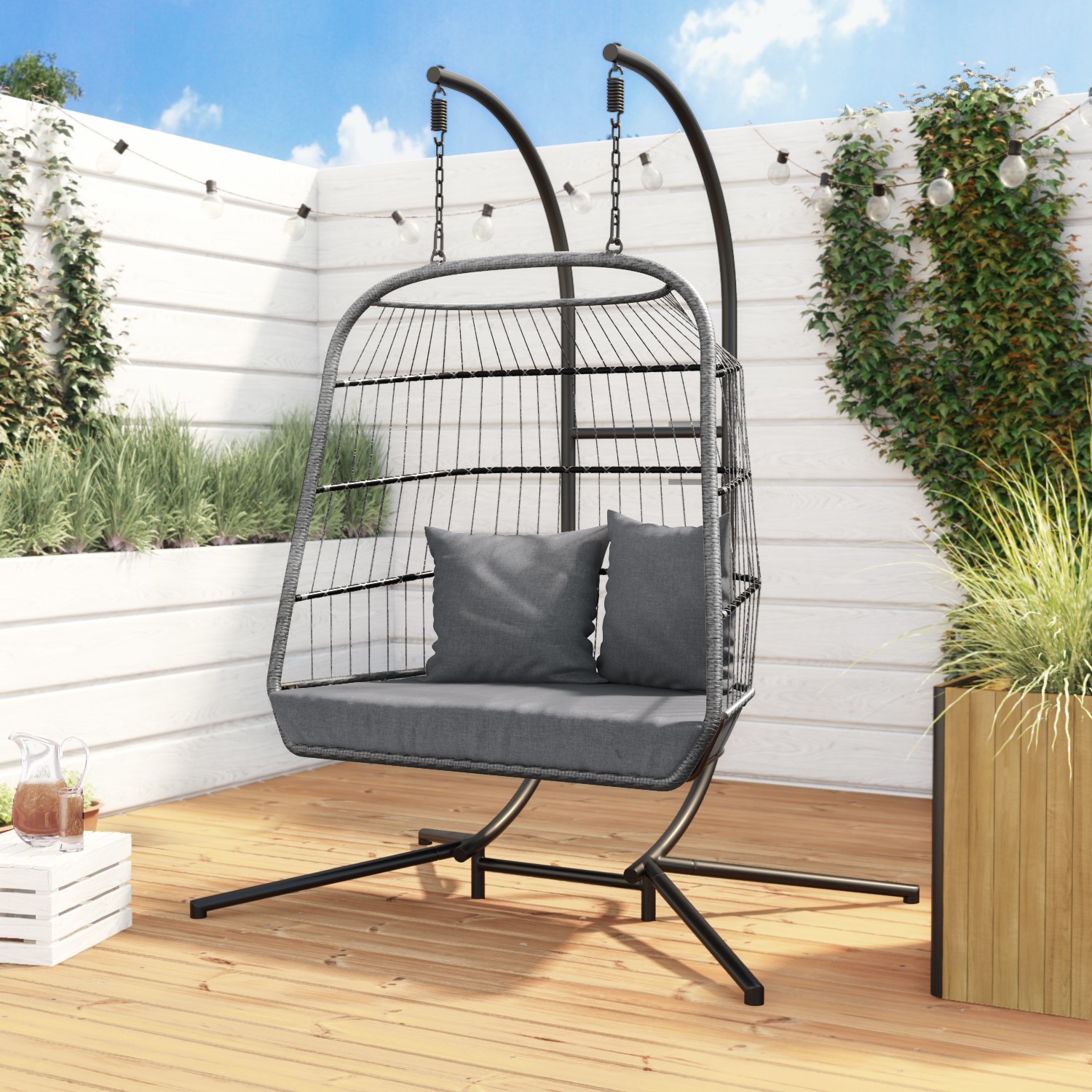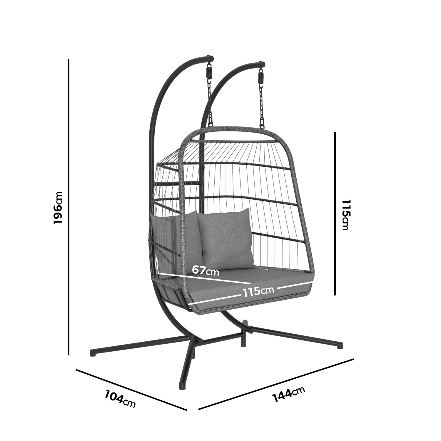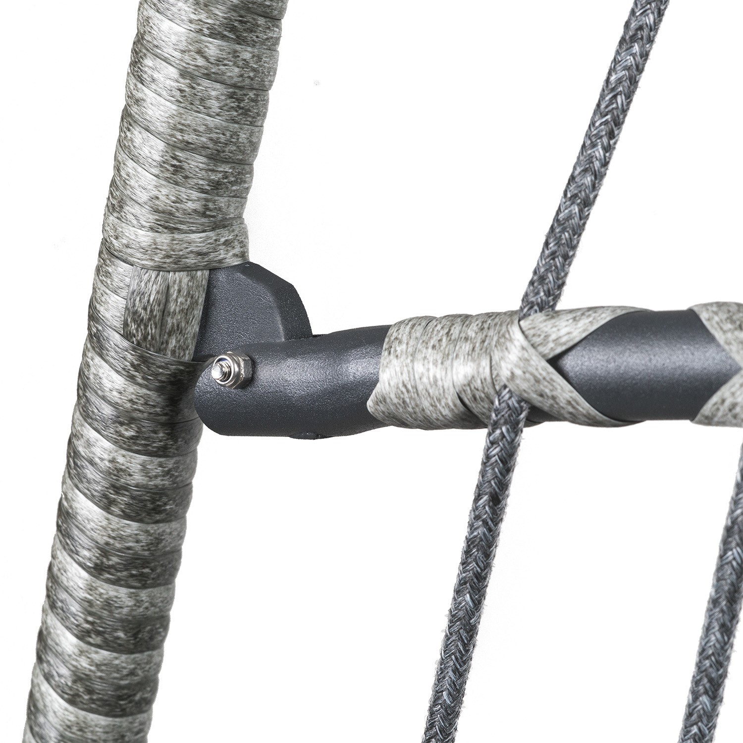 Create your perfect spot to hang out this summer with this outdoor hanging egg chair. Crafted from rope woven and wrapped over a durable aluminium frame to create its egg inspired shape, giving it a contemporary look. It is stable and hangs from strong steel poles and can withstand a max weight of 175kg. It's weather-resistant, and is easy to store away thanks to the folding seat.