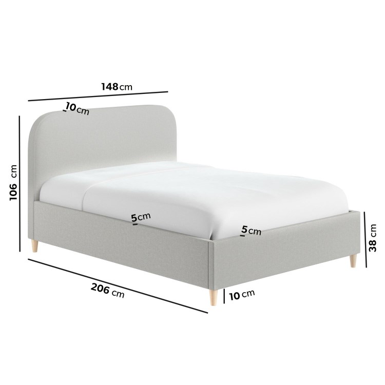 The Zara bed frame is perfect for lovers of minimalist style. This modern bed combines simplicity and comfort in one contemporary design. Featuring a thick, padded curved headboard upholstered in durable, soft-to-touch grey linen fabric and stylish tapered legs. Built with a sturdy wooden frame and a sprung-slatted base supported by central legs, this bed ensures long-lasting durability and stability. This bed fits a UK standard double-size mattress.
