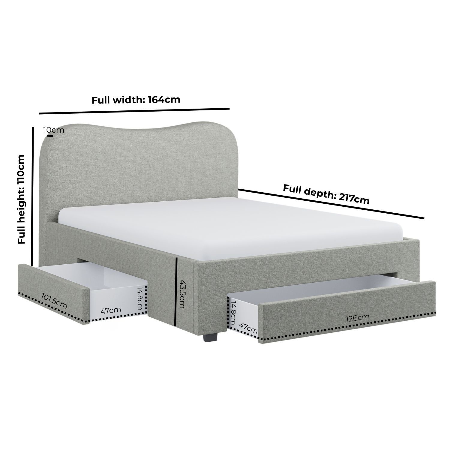 - Drawer dimensions: W101.5 x D47 x H14.8 cm | W126 x D47 x H14.8 cm