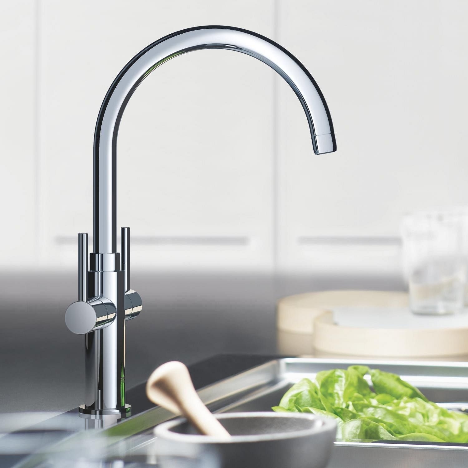 The GROHE Ambi Cosmopolitan Kitchen Mixer Tap combines clean, contemporary styling with dependable performance, making it a practical choice for modern kitchens. Featuring a sleek high spout design, this mixer tap offers generous clearance, ideal for filling large pots and handling everyday kitchen tasks with ease.