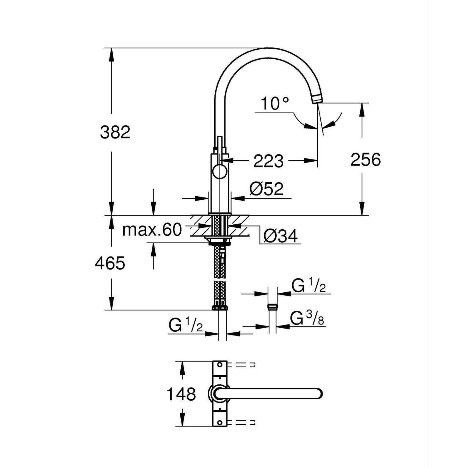 Designed and manufactured by GROHE, this kitchen mixer reflects quality engineering and thoughtful design. Suitable for systems operating from as little as 0.5 bar, it’s a versatile option for many homes. To preserve the finish, avoid cleaning with harsh or abrasive chemicals.